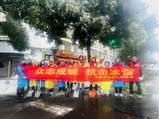 市财政局青年志愿者在人民路社区沿路扫冰除雪