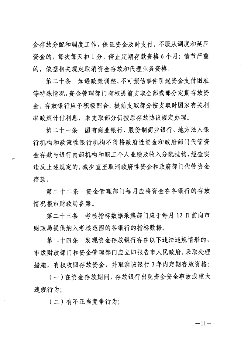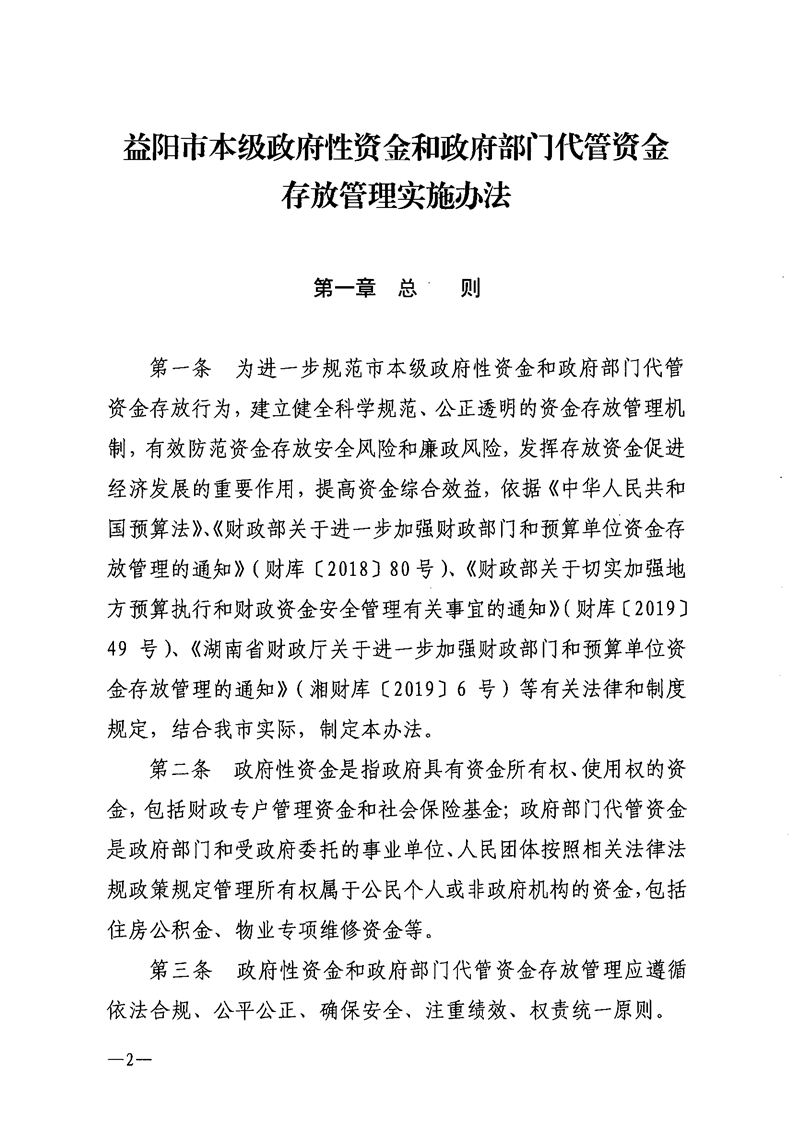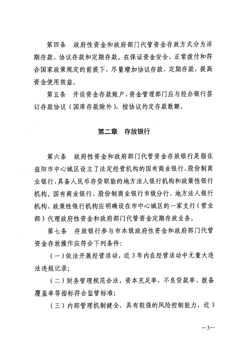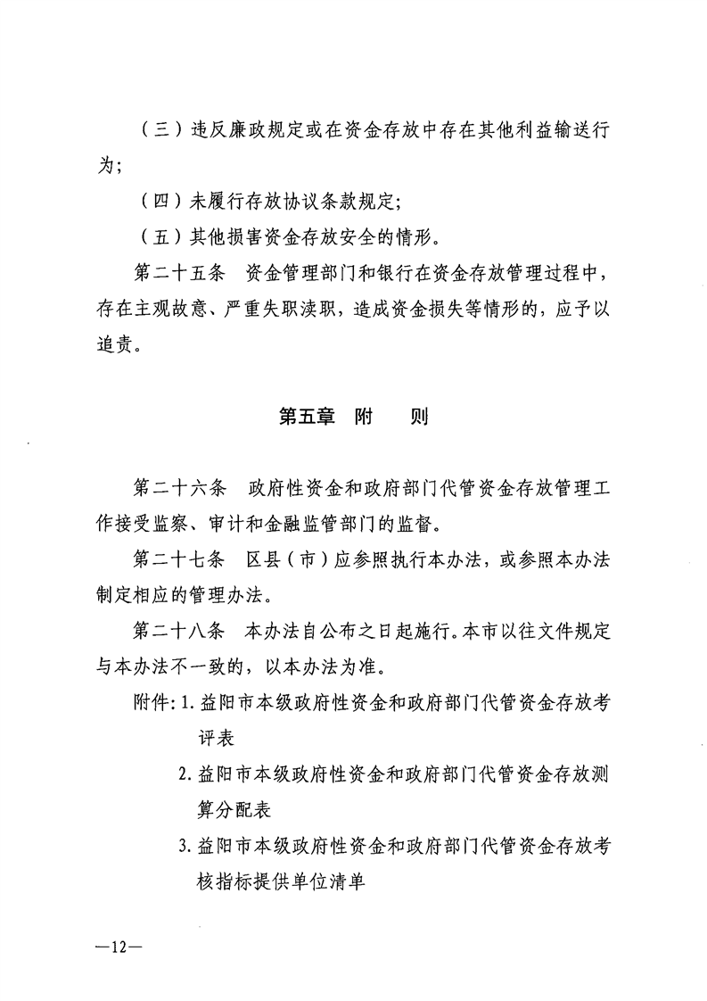 益阳市财政局 益阳市人民政府金融工作办公室 中国人民银行益阳市中心支行关于印发《益阳市本级政府性资金和政府部门代管资金存放管理实施办法》的通知