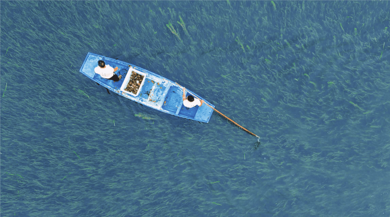 大通湖区蟹农满脸喜悦地提起网中肥美的大闸蟹。钟浩摄