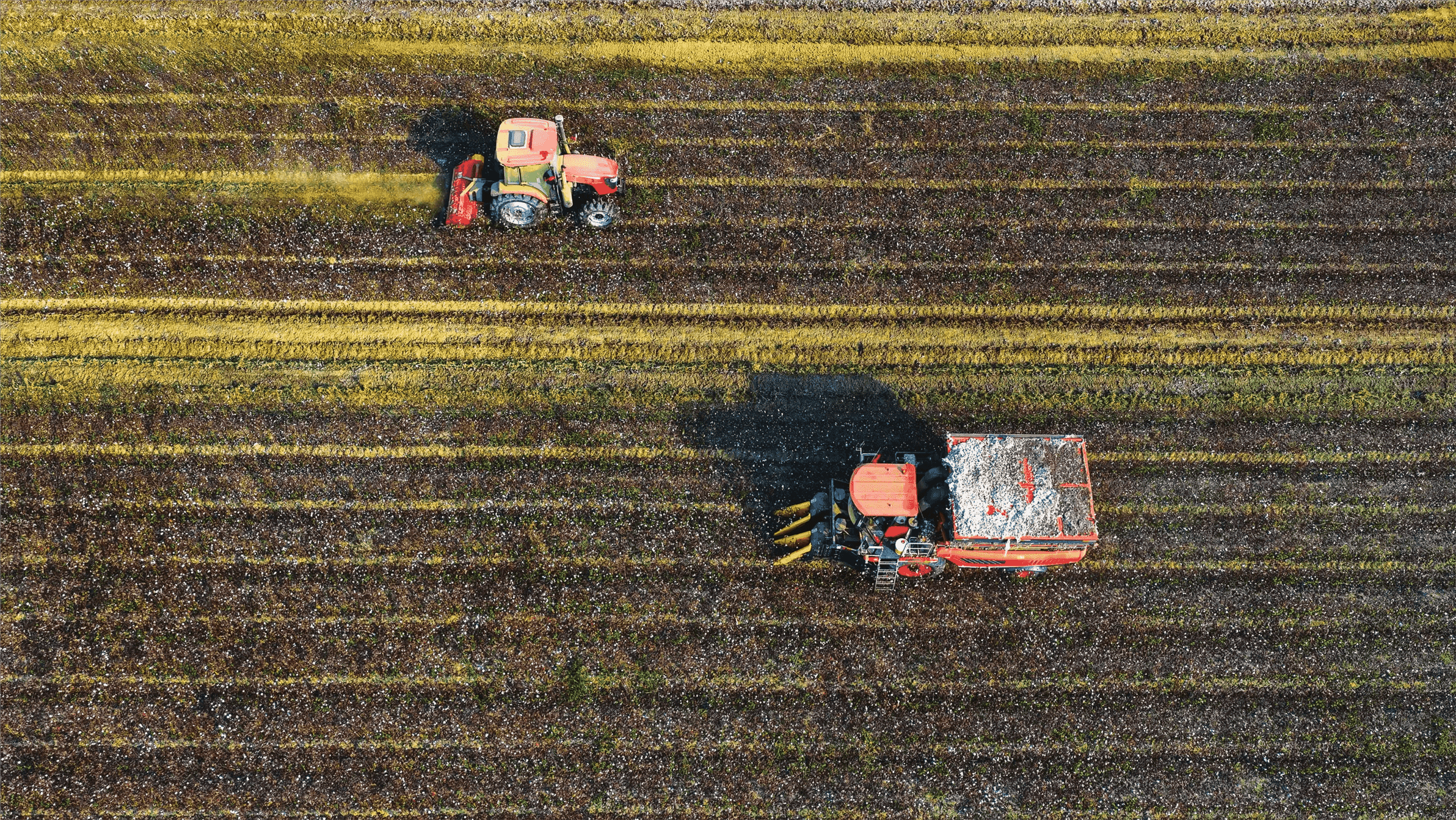 桃江县灰山港镇的“湖南省棉花全程机械化生产示范片”基地迎来了棉花的丰收季。熊朝阳摄