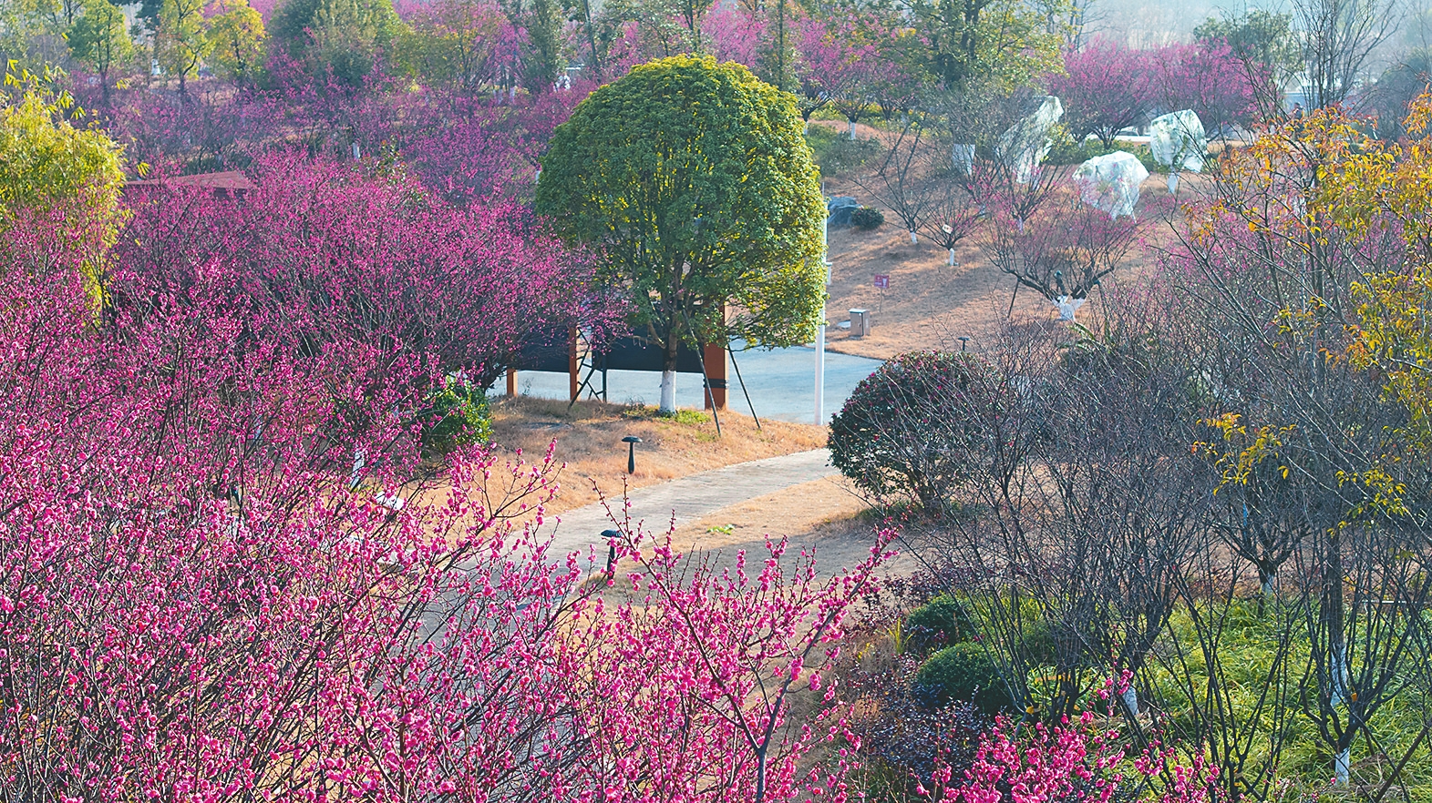寒梅傲雪,不争春色,却已让整座城心动。在文昌阁、会龙山公园等地,宫粉梅、朱砂梅次第盛开,与冬日蓝天构成清雅画卷。行人驻足间,抬眸处,便能收获一份不期而遇的欢喜。这个冬天,不妨循香而行,在梅影间感受生命的热烈与冬日的诗意。