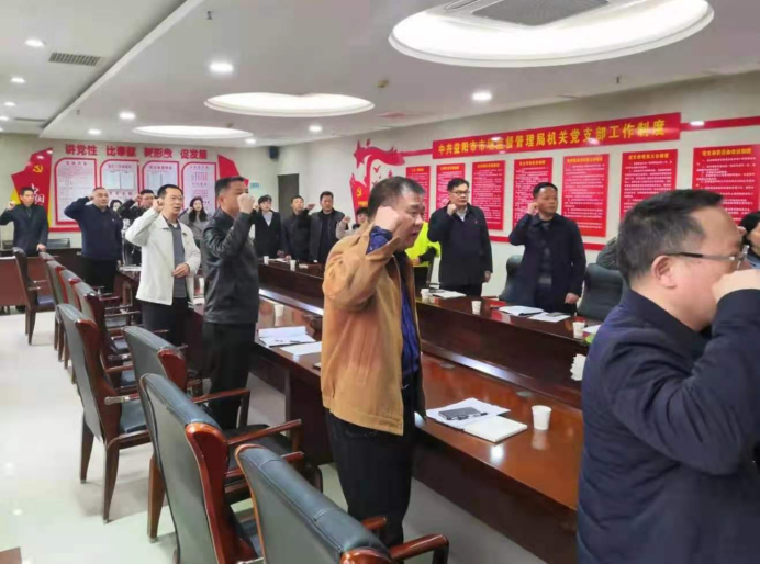 4月13日,益阳市市场监督管理局机关第二支部开展党史学习教育“学史增信”专题学习,重温入党誓词,分享党史故事,集中学习交流。局党组书记朱崇文以普通党员身份参加。