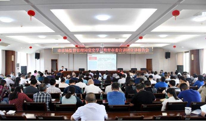 5月8日下午,党史学习教育市委宣讲团宣讲报告会在市市场监督管理局举行,党史学习教育市委宣讲团成员、益阳职业技术学院原院长蔡建宇作宣讲报告,市市场监管局局长龚悟云主持报告会,局机关全体干职工、各直属单位班子成员和直属支部委员会全体成员约140人参加。