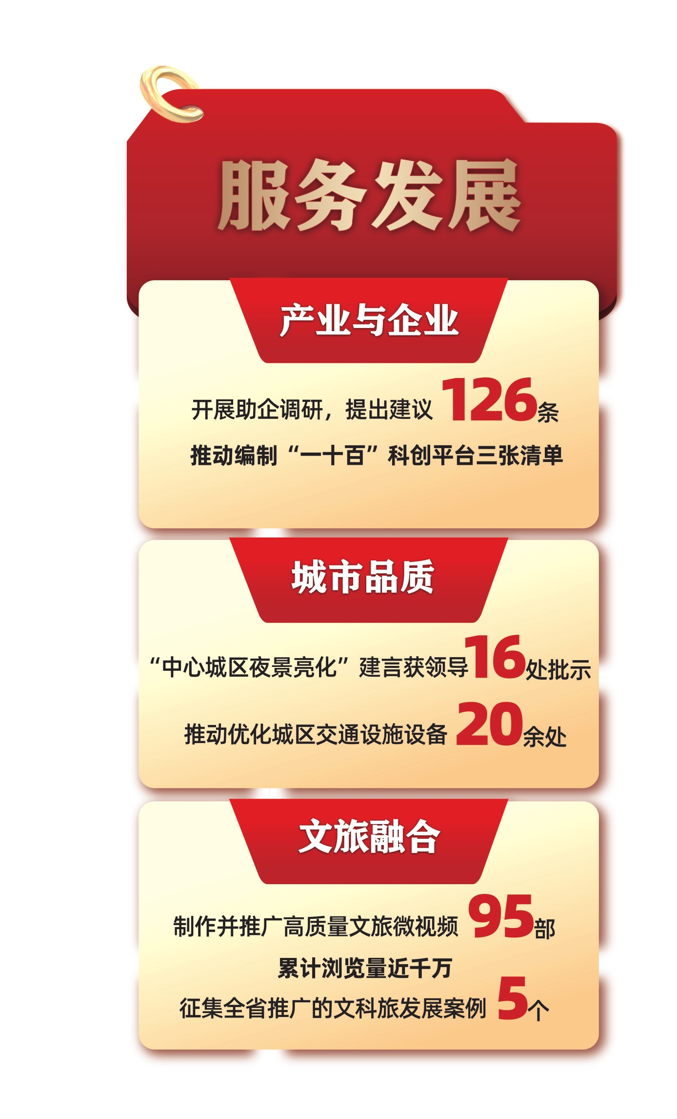 为文旅融合发展尽助推之力。派出委员工作室进驻全市34个3A级以上景区,强化一对一帮扶,有力促进景区品质提升。助推明清古巷、会龙山、清溪村景区、资江画廊联动发展。精心组织“风起湖湘潮·委员讲亲历”“跟着诗联游益阳”“益起助文旅·委员在行动”三大微视频征集刊播活动,推出高质量文旅微视频95部,其中关于明清古巷、清溪村、黑茶文化等微视频被人民网、凤凰网等多家网站刊播,浏览量累计近千万。我市征集的5个文科旅发展典型案例,在全省政协系统宣推。