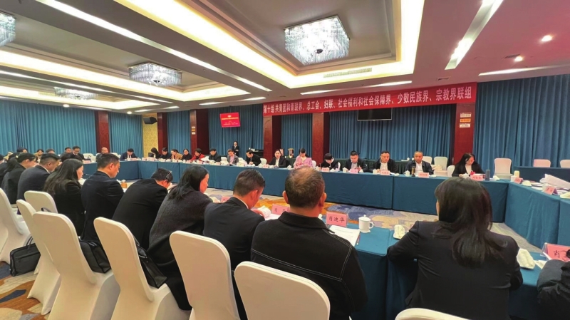 共青团和青联界、总工会、妇联、社会福利和社会保障界、少数民族界、宗教界联组讨论现场。胡婷摄