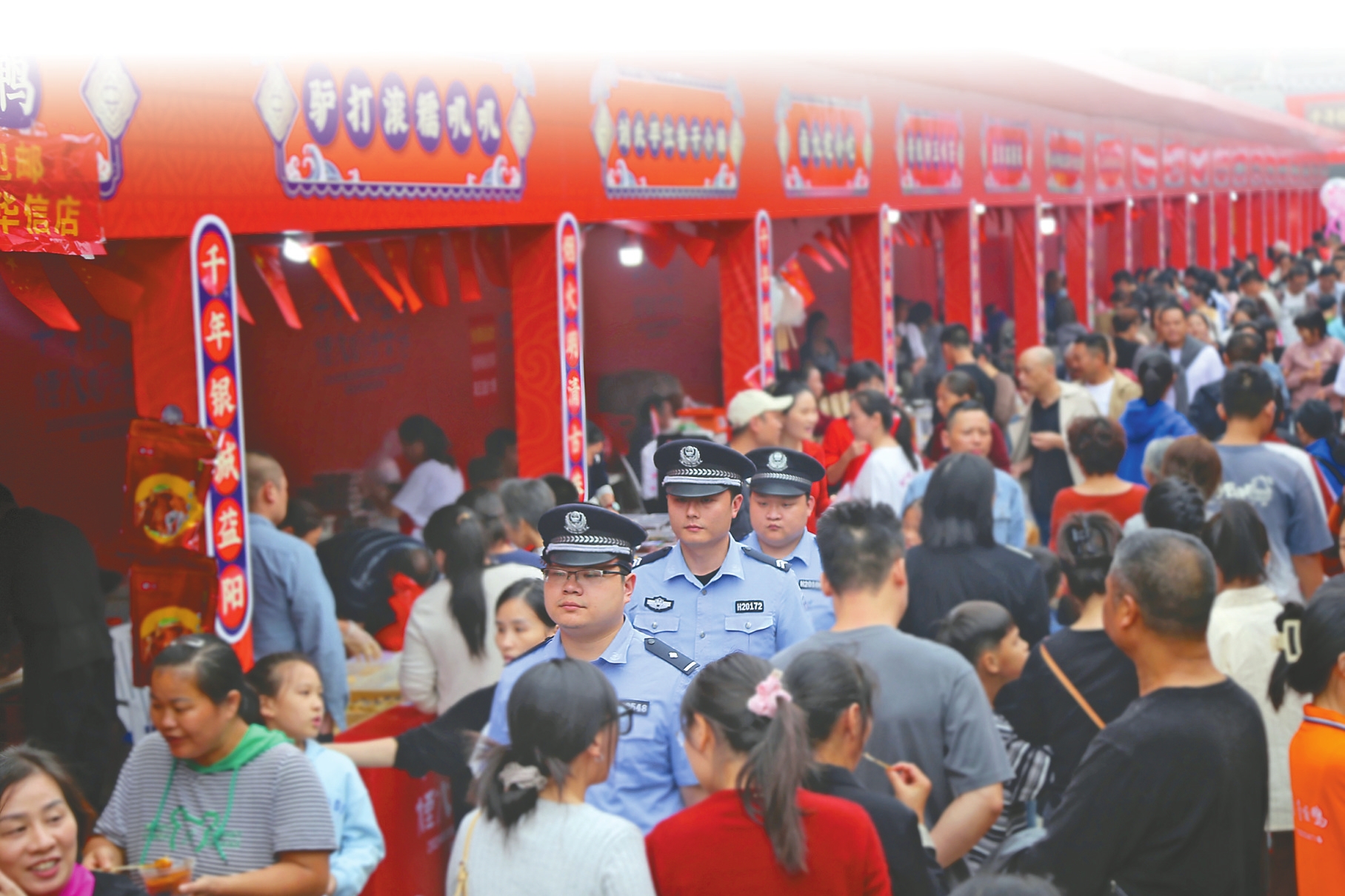2024年10月1日,资阳分局民警在明清古巷巡逻安保。