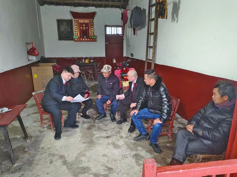 工作人员走村入户破解执行难。