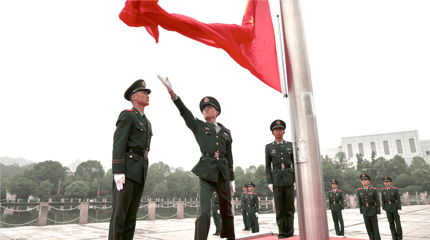 上午8时,升国旗仪式开始。国旗护卫队迈着整齐有力的步伐,昂首阔步护送国旗至升旗台。随着雄壮的《义勇军进行曲》旋律响起,升旗手高扬起国旗,鲜艳的五星红旗迎风招展,在庄严的国歌声中缓缓升起。全体人员庄严肃立,面向国旗行注目礼,表达对伟大祖国的深情祝福,祝福祖国更加繁荣昌盛、国泰民安。