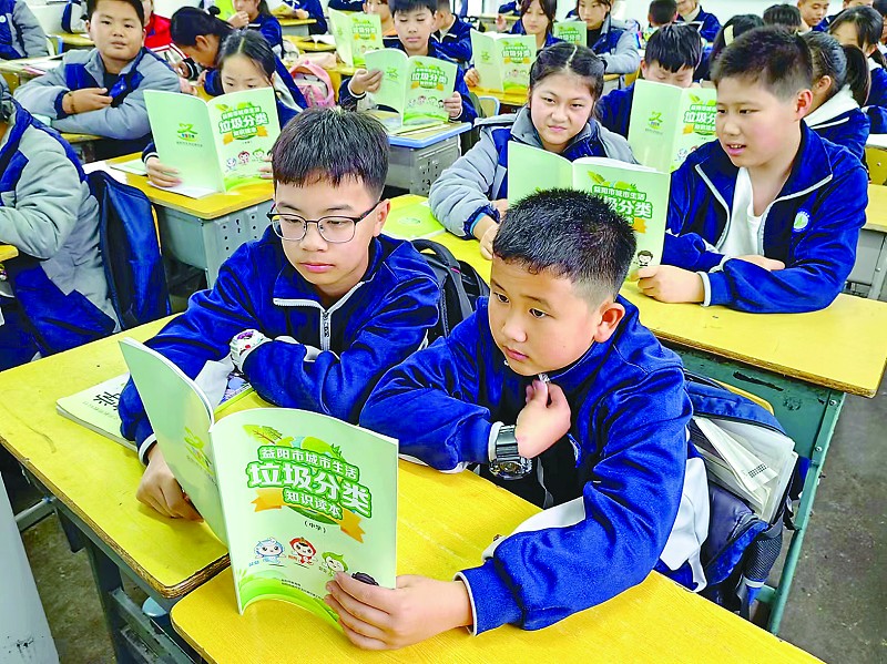 学生在“小小宣讲团”的带领下学习垃圾分类知识。周琳摄