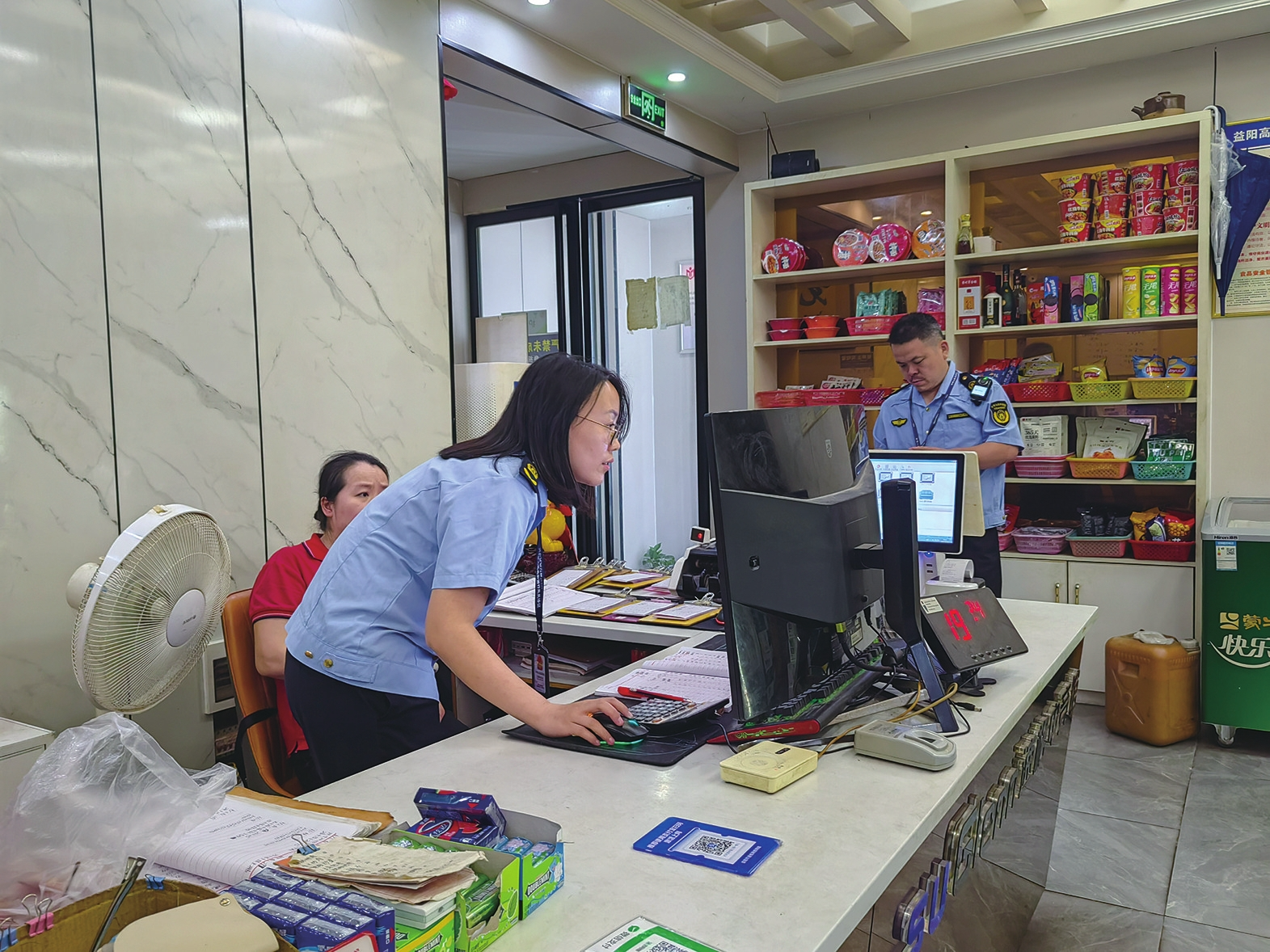 市文旅广体局执法人员在速格电竞网吧检查未成年人违规上网情况。(图片由市文旅广体局提供)