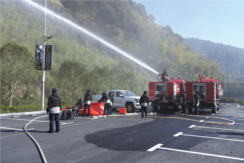 训练现场,预设燃烧区投放烟雾装置后,参演人员快速完成10分钟集结、高压扬程泵操作、复杂地形泵车接力输水等科目训练。各队伍协同采取“分片包干、打清结合”战法处置火情,检验队伍的快速反应能力和实战能力。