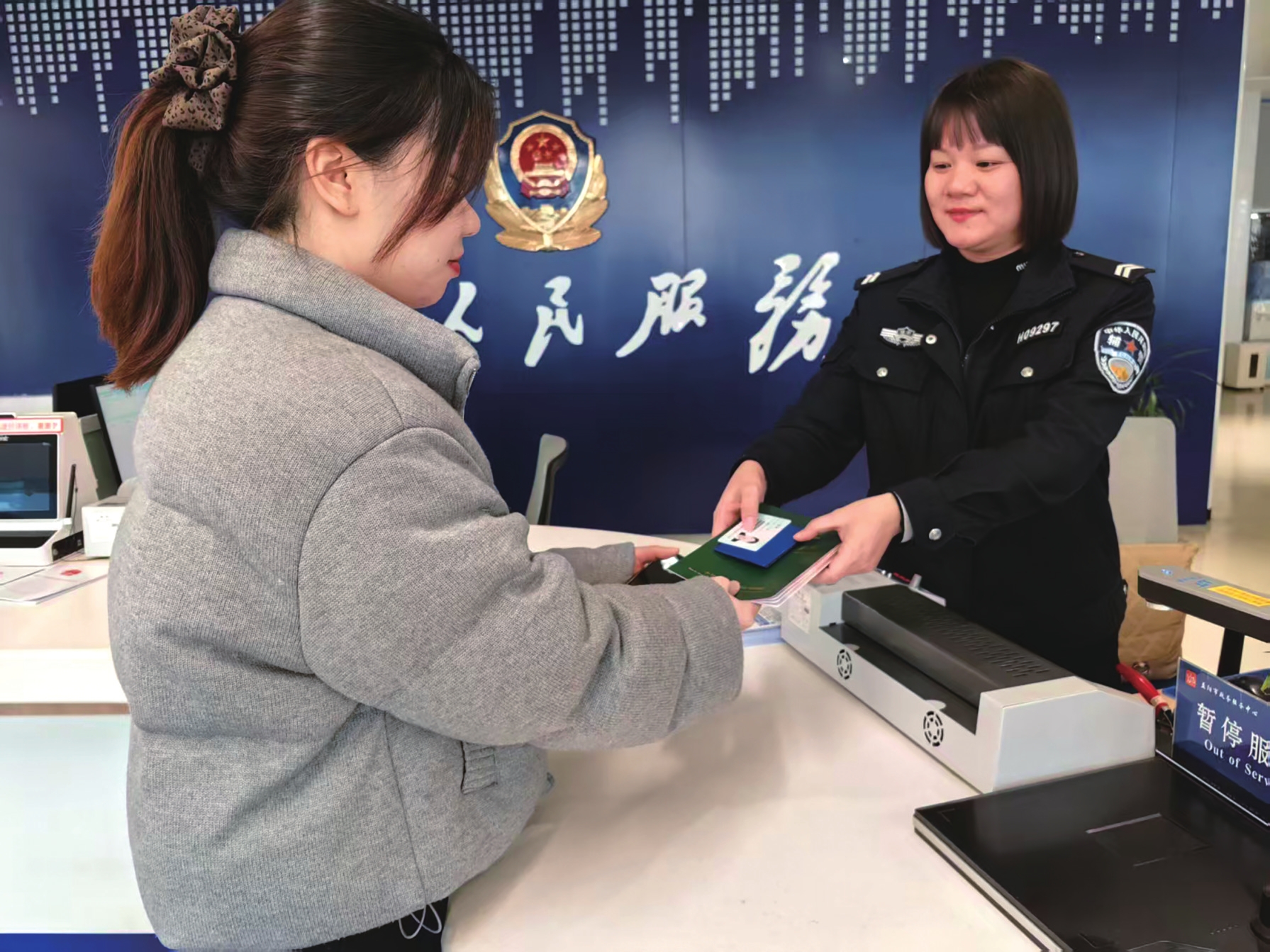 车主在线上提交新车上牌资料后,不到1小时就领到了行驶证、车辆登记证等证件。曹灿摄
