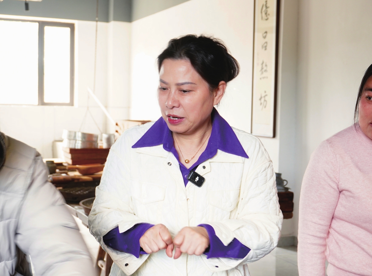 2021年,公益性的“億昌非遗工坊”成立。她将工坊打造成非遗传承与乡村振兴的纽带,这里既展示着传统技艺的魅力,也承载着农户增收的希望。2022年,工坊获评省级非遗工坊示范点,全年接待上万名游客,让更多人了解了非遗。2024年,周宏又促进工坊与黄茅洲镇黄栗塘村签订长期产业帮扶协议,带动当地群众稳定增收。