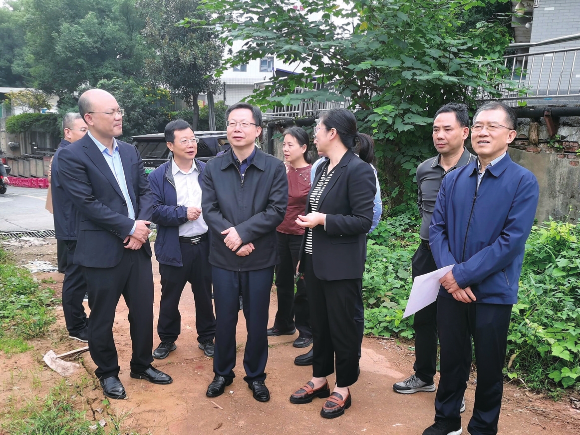 10月15日,市政协主席胡立安(前排左二)深入中心城区就《益阳市中心城区缓解停车难治理停车乱两年行动计划(2023-2024)》落实情况进行专项视察。(市政协供图)