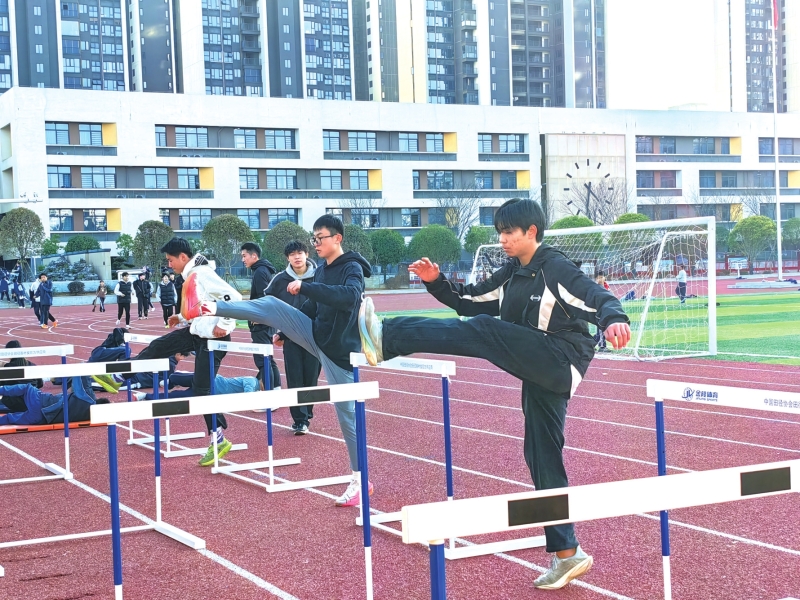 1月7日16时许,位于赫山区迎宾东路旁的世通学校响起了清脆的放学铃声,洒满阳光的操场上很快汇集了近70名运动员,在几名专业教练员的指导下,将要参加第十五届省运会青少年组跑步、跨栏、跳高、跳远等田径项目的选手们分别开始紧张训练。拉伸、热身、体能训练、力量训练……训练项目一个接一个,随着强度不断提升,难度不断增加,他们的脸上冒出了细密的汗珠。