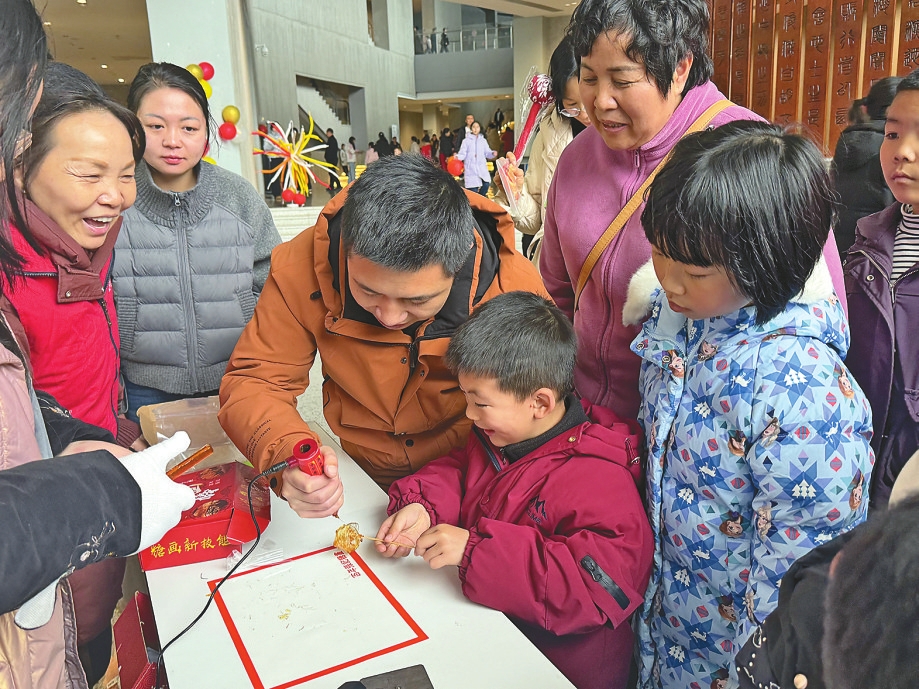 甜香四溢的制糖体验区前,始终排着长长的队伍,叮叮糖、搅搅糖、非遗糖画等传统糖品制作体验,让前来参与的市民们直呼“甜到心坎里”。传统民俗与趣味互动巧妙碰撞融合,让市民在轻松玩乐的过程中领略非遗文化魅力、回味童年美好记忆,也让元宵佳节更具浓浓的烟火气与醇厚的文化味。