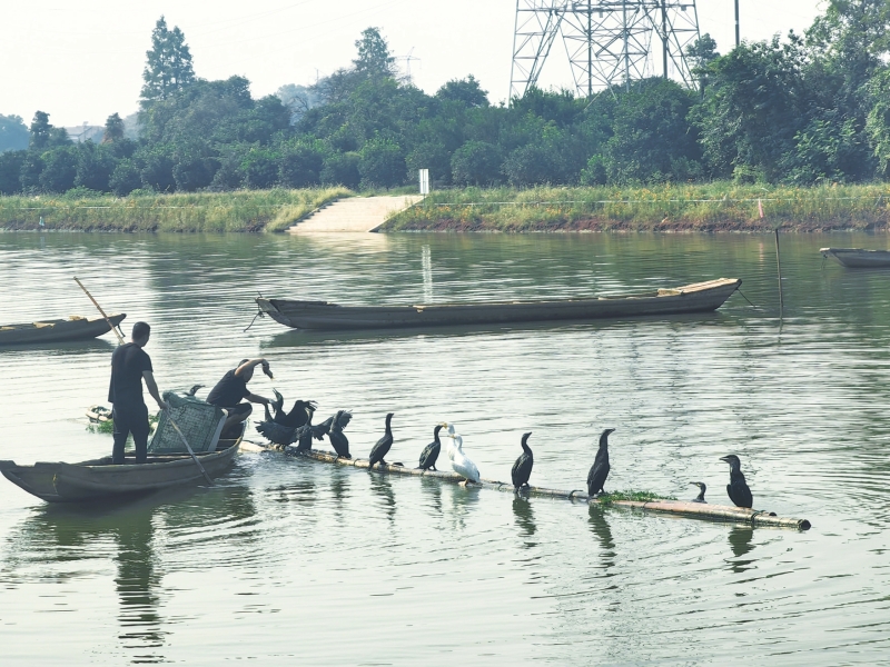 小河咀村村民正在喂养鸬鹚。李娜摄
