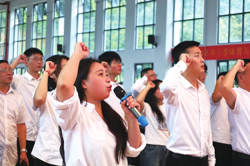 活动中,学生代表登台献词,用真挚的语言表达对老师的感恩之情与美好祝愿。新教师代表发言,表示十分荣幸加入这一优秀集体,并立志为学校发展与学生成长倾注满腔热情与智慧。全体教师庄严宣誓:“恪守师德、潜心育人、奋斗终身……”铿锵誓言回荡校园,展现了教师们投身教育、矢志不渝的坚定信念。