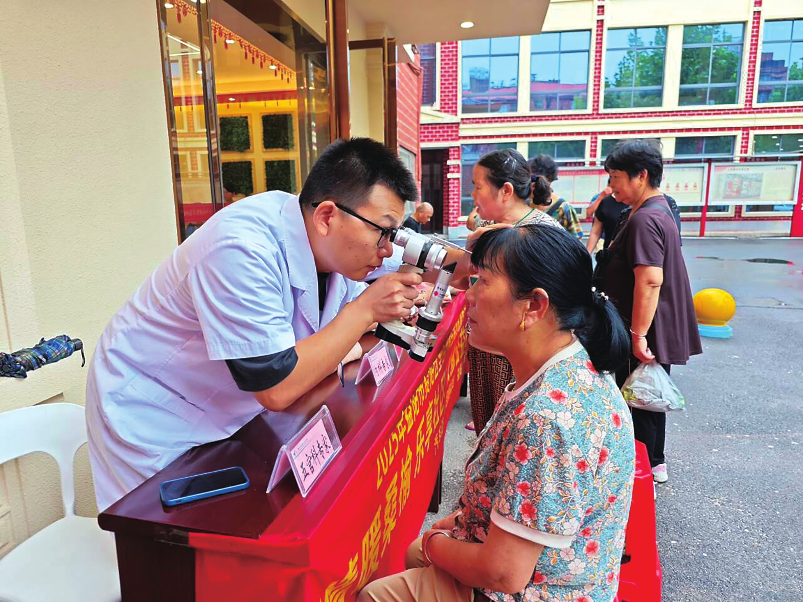 医生为社区居民义诊。周琳摄