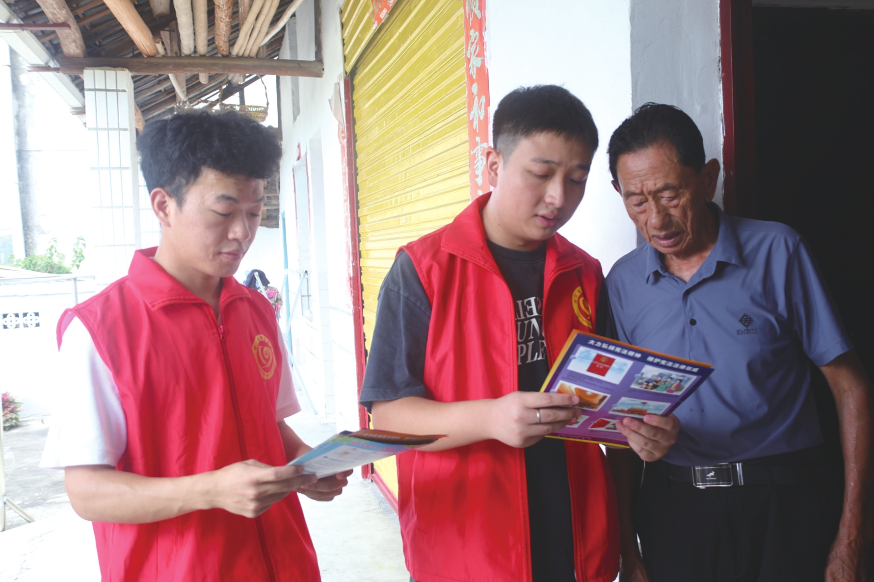 综治中心的工作人员到村里开展普法宣传活动。卢静摄
