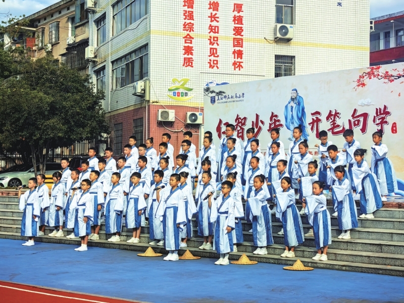 9月12日,益阳师范附属小学为一年级新生精心举办“仁智少年开笔向学”开笔礼,通过正衣冠、行拜礼、朱砂启智、击鼓鸣志、开笔写“人”等传统仪式,带领萌娃开启求学新程,传承中华优秀传统文化。