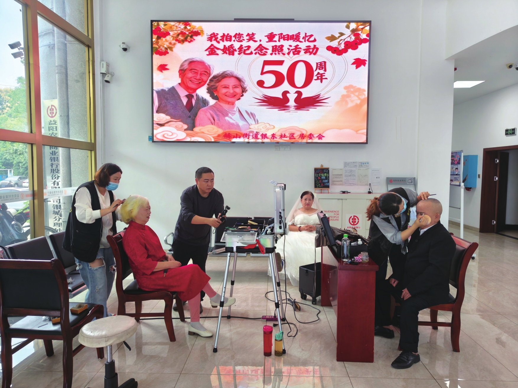 “我们想通过这次爱心活动,为社区老人留存下珍贵的晚年纪念,让独居老人感受到社区大家庭的温暖,让金婚夫妻重温相伴的温情。”银东社区党支部书记、居委会主任杨一舟说。