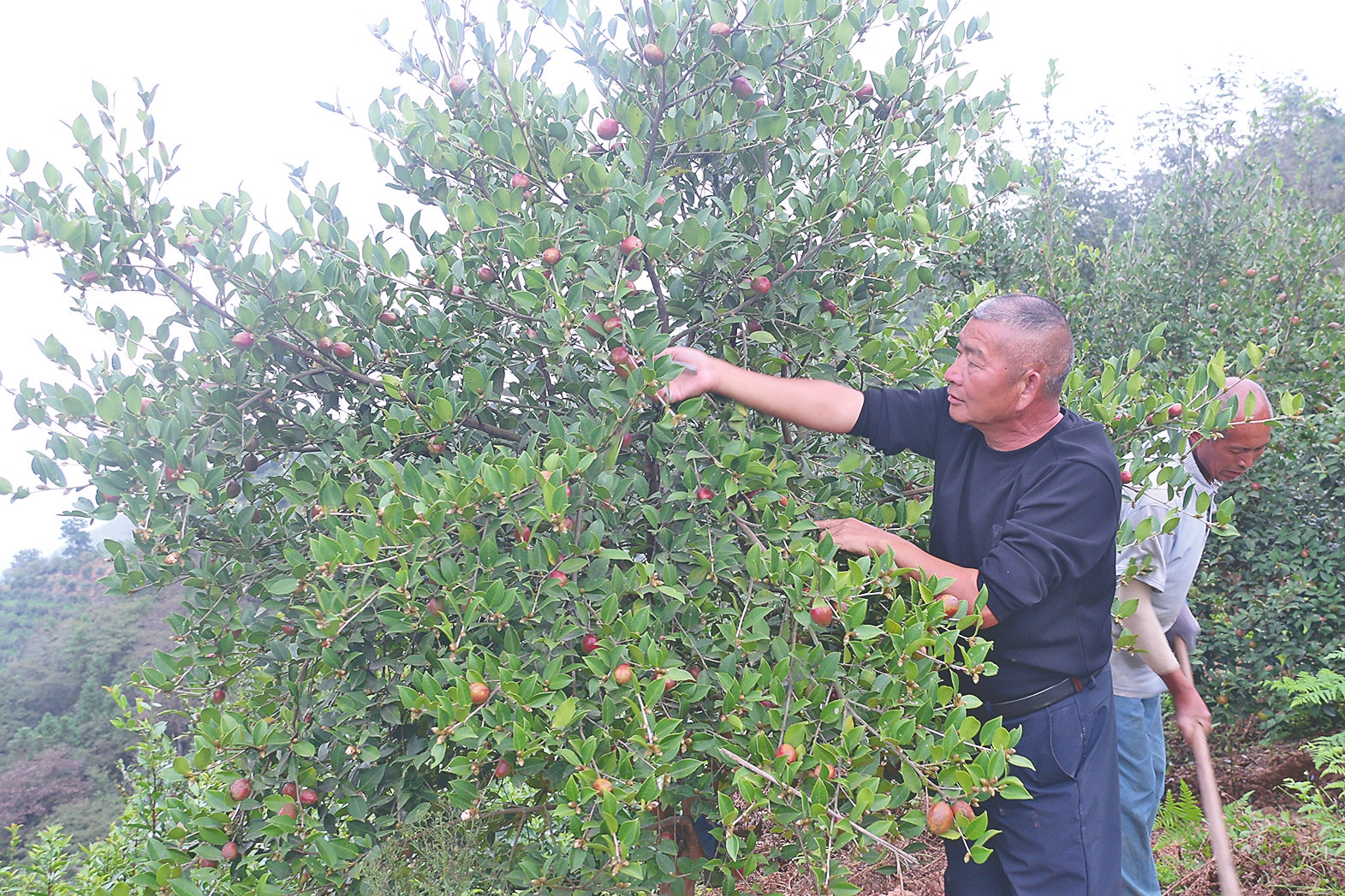 图为邓亮山在修剪油茶。卢静摄