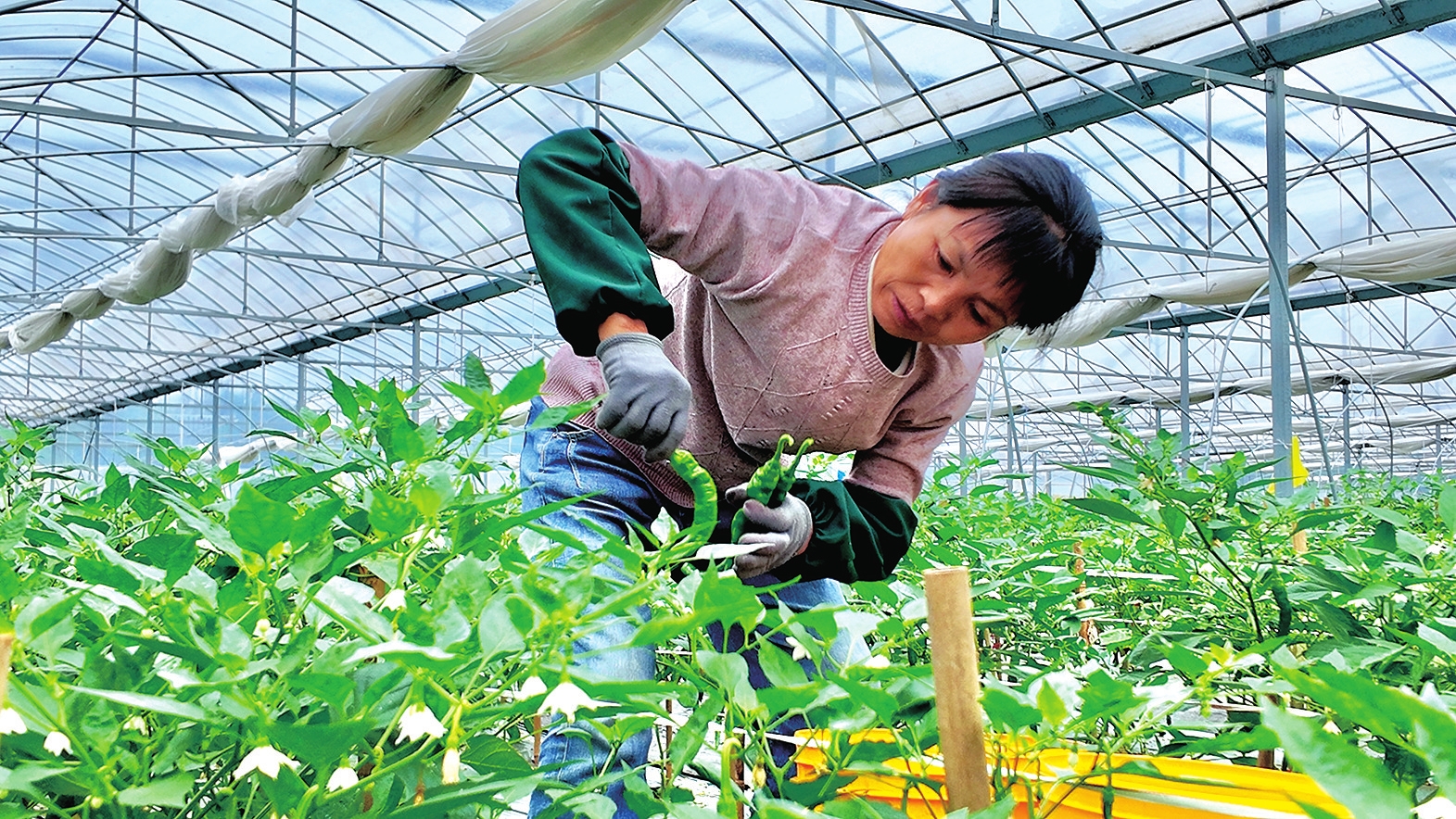 基地还在辣椒种植行列中留出近1米的间距,每年春耕期嵌入水稻育秧,充分利用空间,有效节约时间、成本和人力,推动农业从“一棚单产”向“多品组合”转型。据统计,上半年育秧加辣椒种植,下半年种植秋季辣椒,一年的效益能达到200万元。一棚多用、多收不仅提高了大棚的经济效益,也为当地农民提供了更多就业机会。当前,基地正处于辣椒采收期,用工需求在30人以上。“我在这里每个月能拿2000多元,钱也赚了,家里也打理好了。”村民廖冬英笑着说。