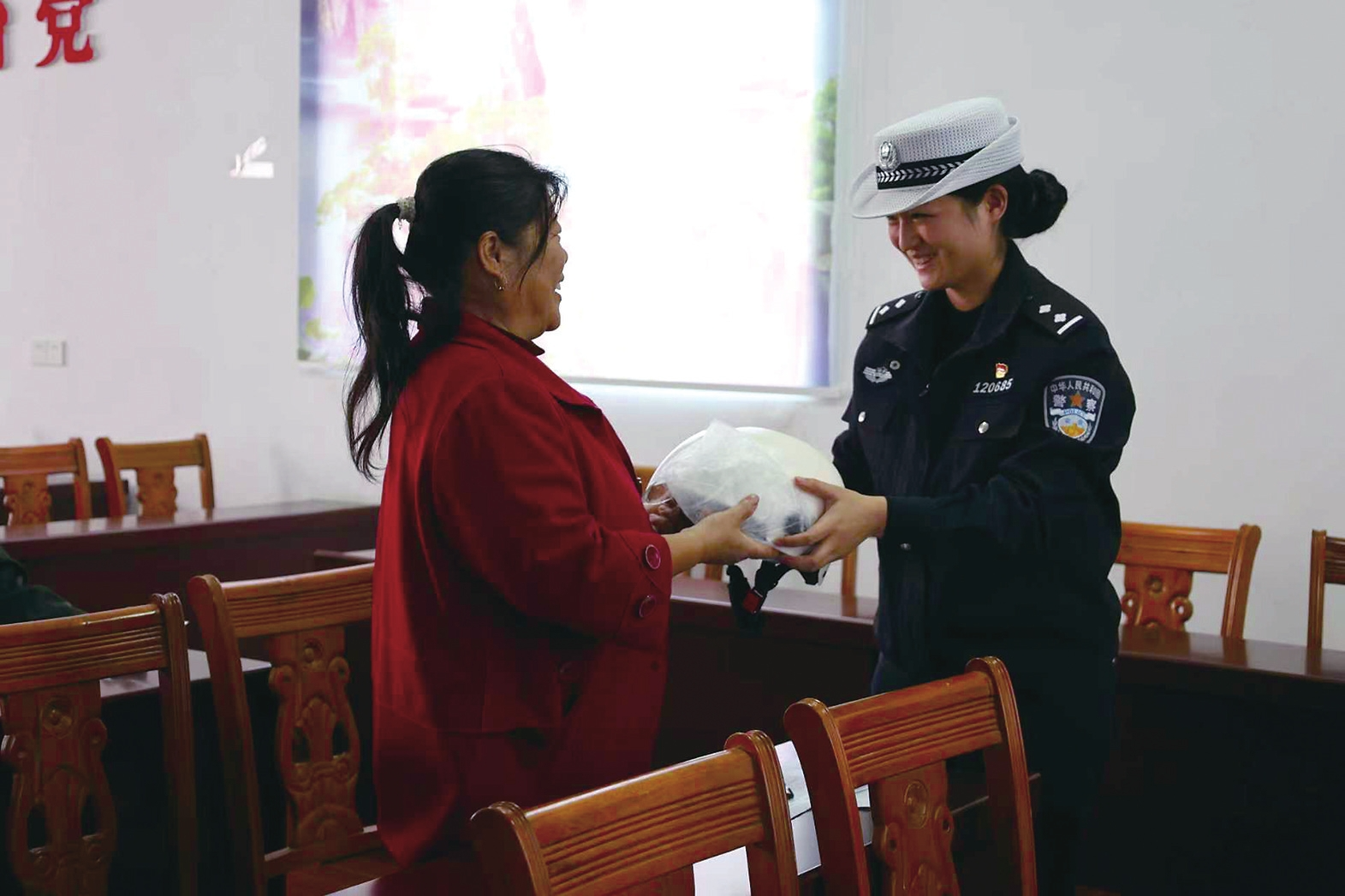 资阳大队一改传统说教,将安全知识编成村民喜闻乐见的民间艺术形式,推动宣传从“要你听”转变为“你想听”。在利用方言顺口溜开展“空中宣传”的同时,大队还同步推进“美丽乡村行”交通安全巡回宣讲,做实“地面引导”。宣讲不再局限于发传单、拉横幅,而是深入各村,通过播放警示教育片、剖析真实案例等方式,直观展现不戴头盔、酒后驾驶等行为的严重后果,并在现场免费发放安全头盔,示范正确佩戴方法。这种“乡音宣讲+务实举措”的组合方式,有效提升了农村群众的交通安全意识,让大家切实认识到“小头盔”蕴含的“大安全”。