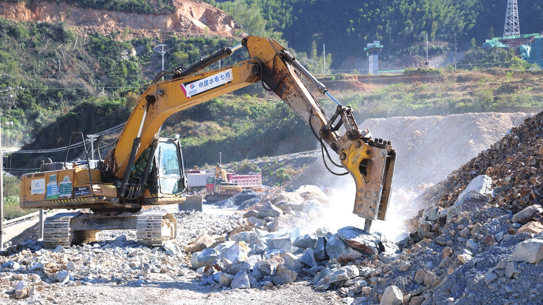 工程机械正在进行碎石作业。