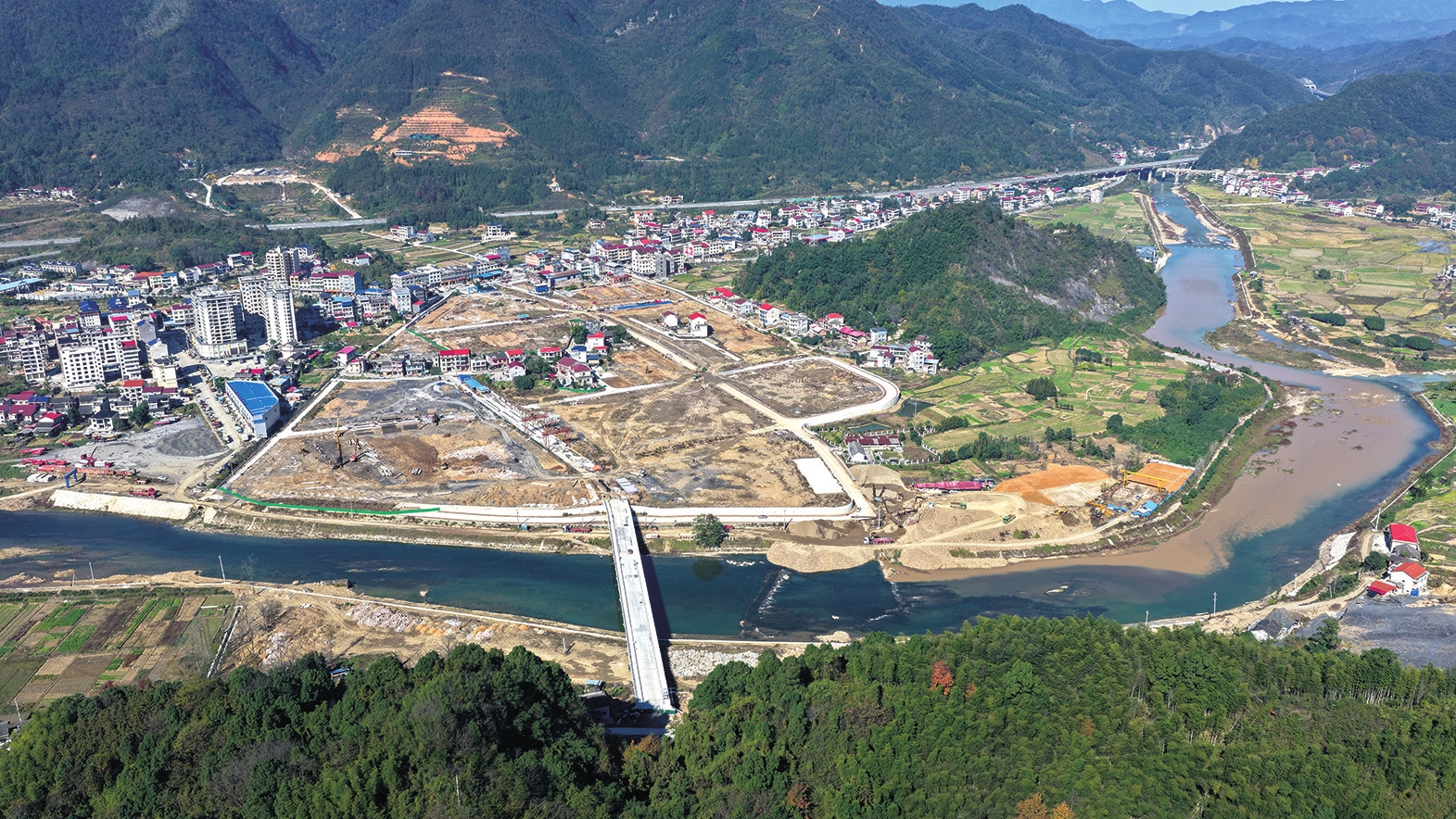 仙溪镇镇区简家塅安置区建设施工全貌。(本版图片由钟浩提供)