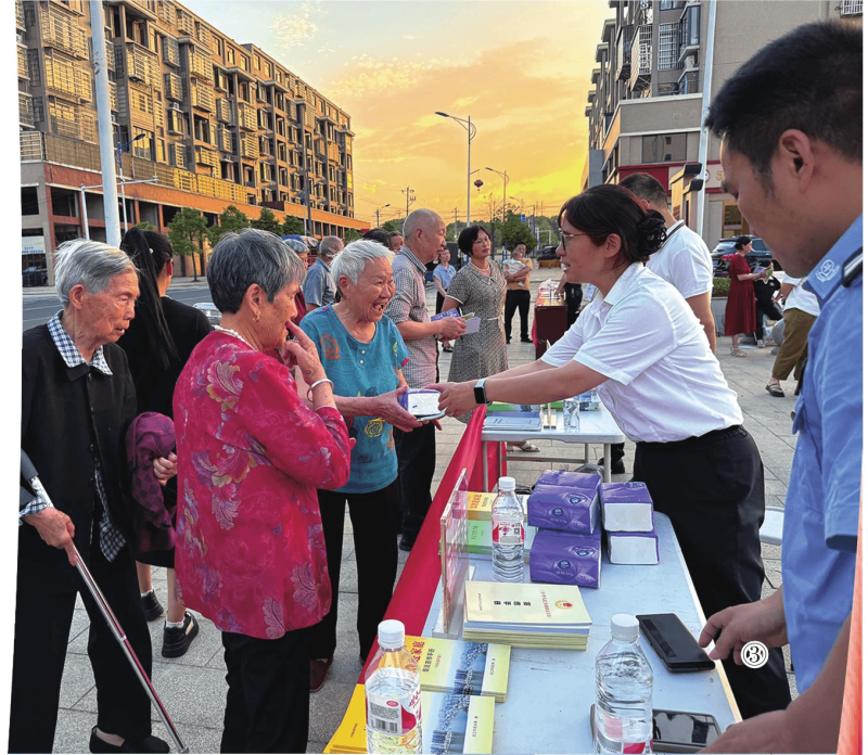 形式出新,法治宣传入脑入心。推动普法从“大水漫灌”到“精准滴灌”。从传统的摆摊设点、发放资料,发展到大学生“送法下乡”“白果树下法治屋场会”“早市晚场”流动普法等生动形式。充分运用新媒体,拍摄的快板系列《“典”亮生活护“未”成长》等普法短视频在新湖南等平台浏览量超20万,“法治星光‘典’亮生活”活动获《法治日报》刊发。五年开展各类普法宣传活动500余场,发放资料数十万份,覆盖受众超30万人次。