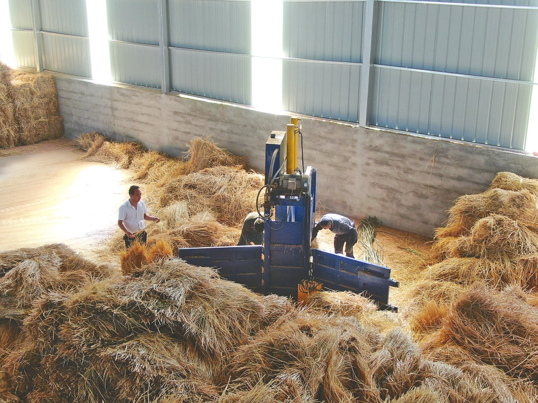 秸秆进厂粉碎压成饼,做成牛羊饲料得以综合利用。