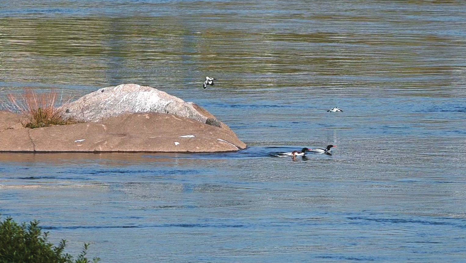桃江羞女湖湿地公园几只中华秋沙鸭在戏水。黄云摄