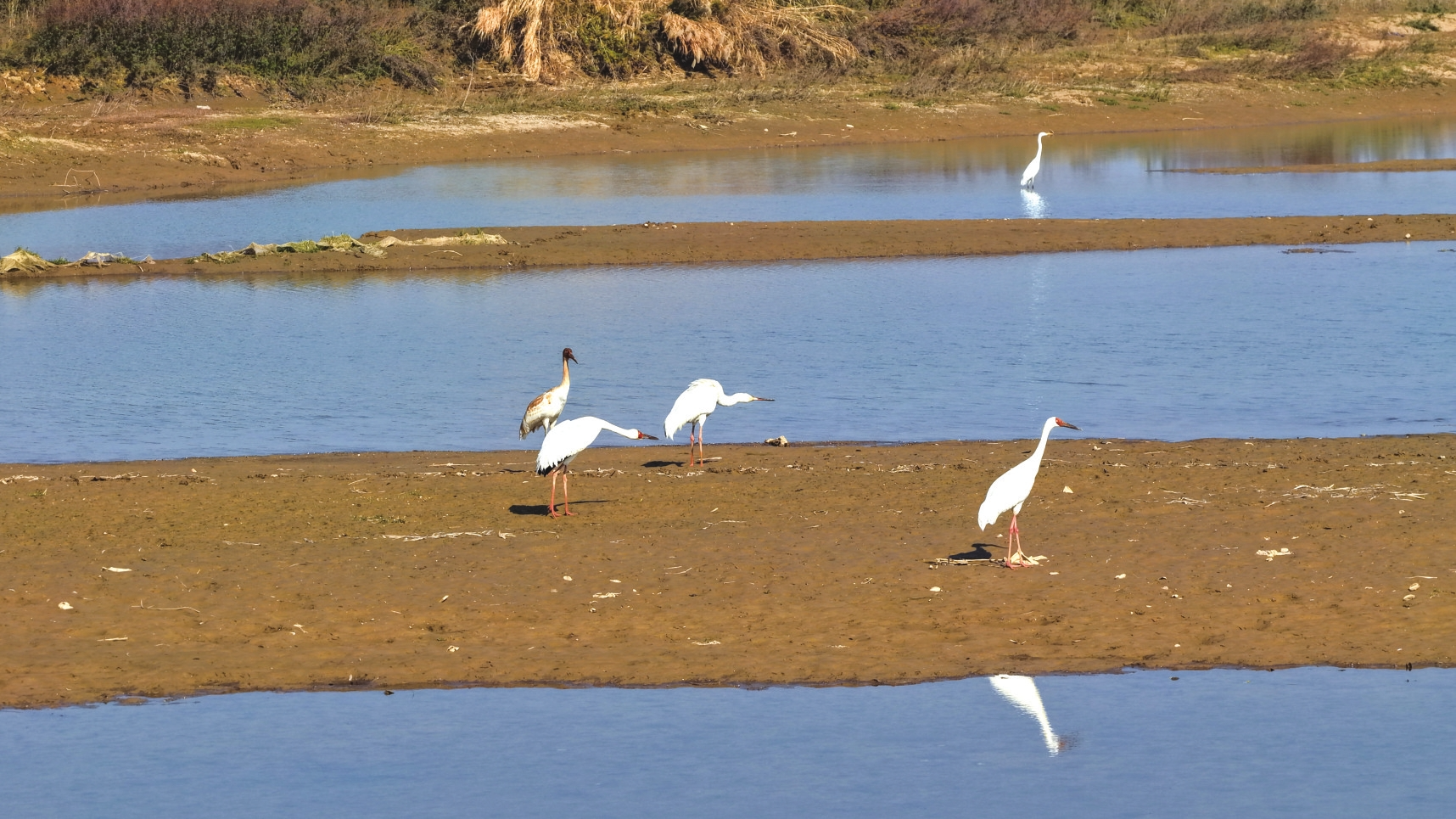 南洞庭湖省级自然保护区资阳管护区域白鹤在觅食。钟浩摄