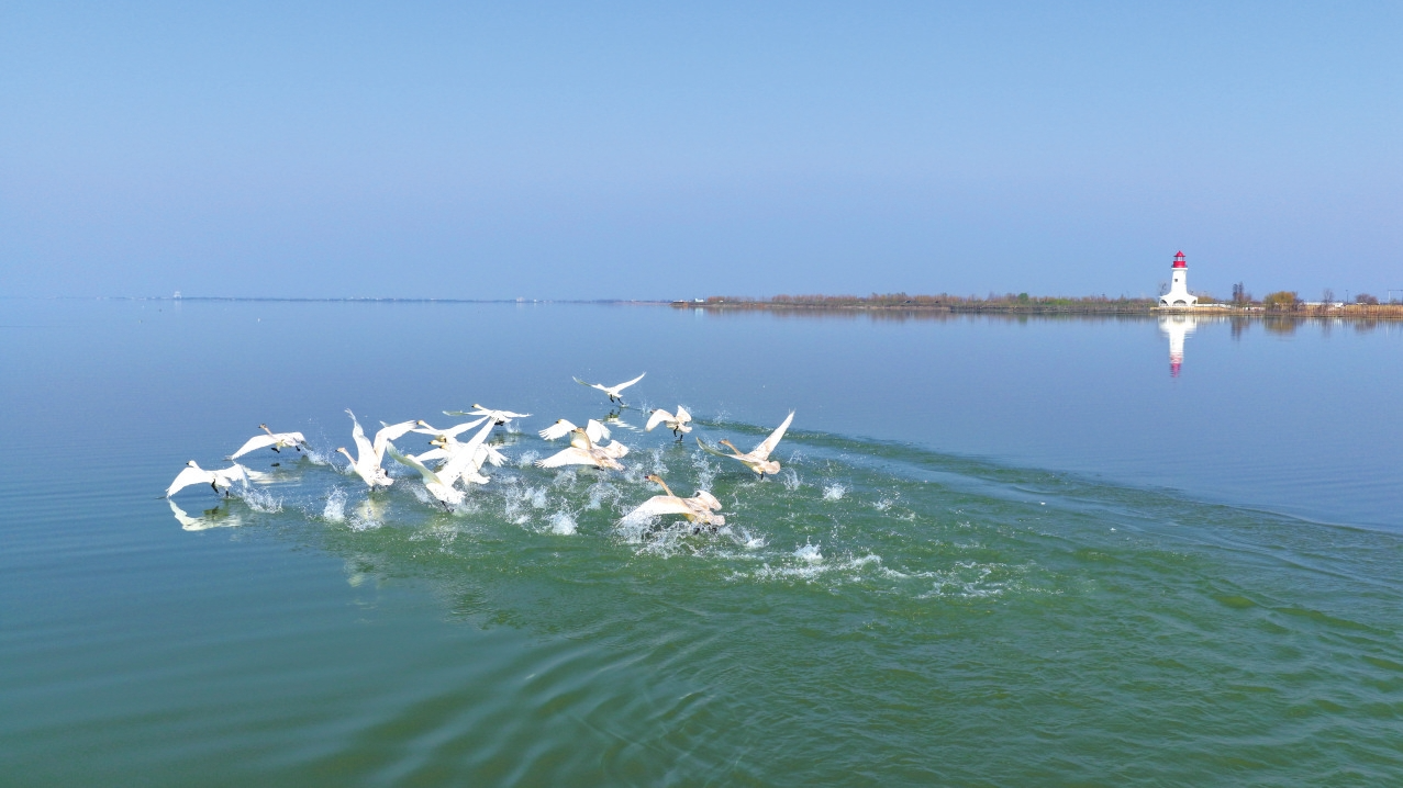 越冬候鸟在大通湖灯塔水域嬉戏。钟浩摄