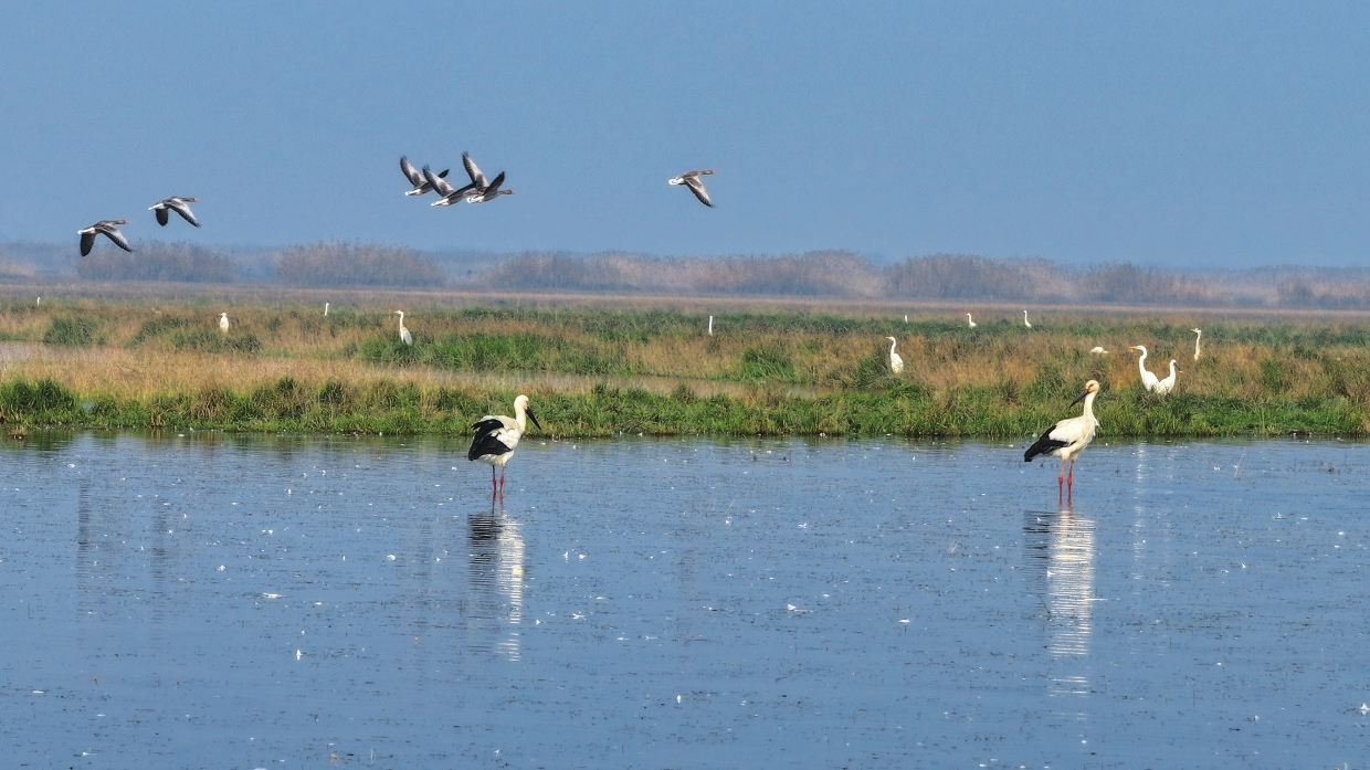 多措并举之下,南洞庭湖冬候鸟数量逐年增长,成为众多珍稀鸟类的安居之所。近年来,监测人员在此连续记录到国家一级保护鸟类青头潜鸭、东方白鹳自然繁育后代。这里不仅是目前我国发现的青头潜鸭最南繁殖地,也是我省首次记录到东方白鹳自然繁育的成功范例,生动印证了湿地保护与生态修复的显著成效。