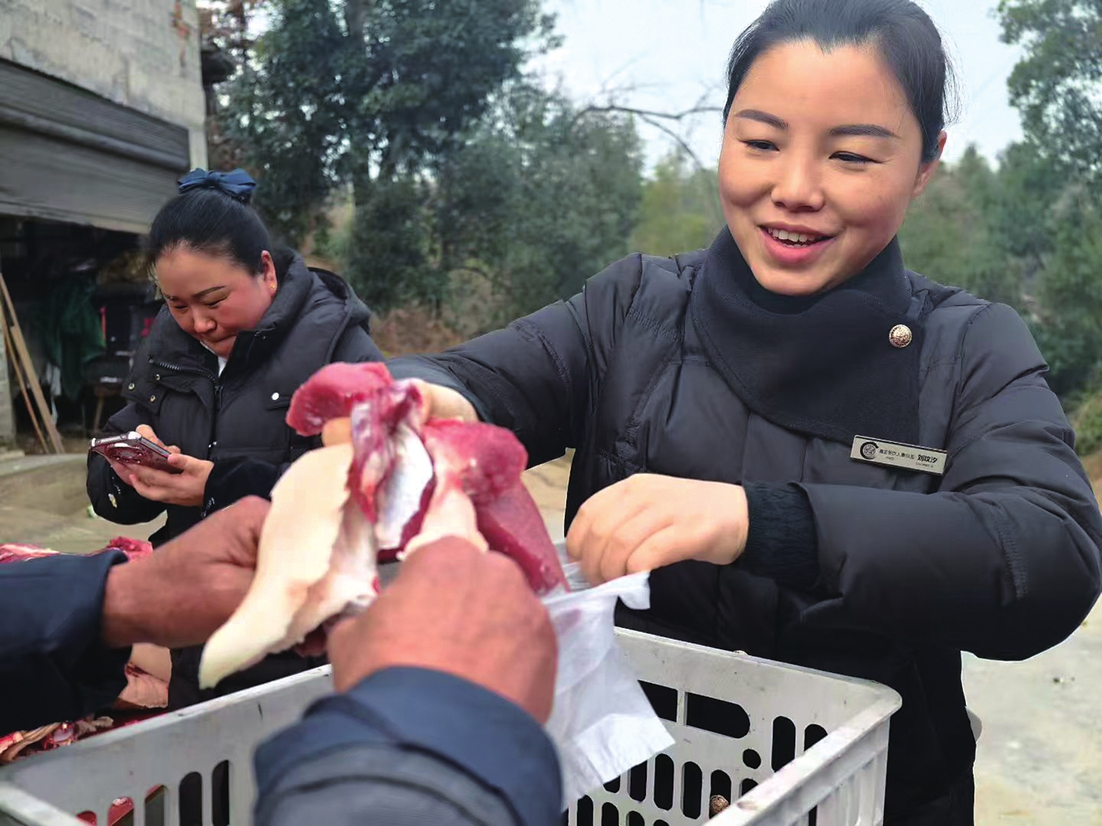 爱心人士现场购买新鲜猪肉,给王小燕家带来希望。陈浩军摄