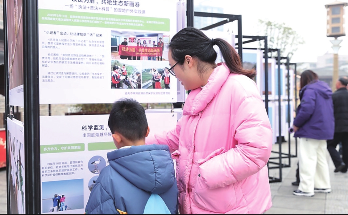 颁奖仪式结束后,市民纷纷步入展区欣赏大赛的优秀获奖作品,从壮丽的湖光山色到灵动的候鸟瞬间,生动呈现了湿地万物共生的和谐图景。为增强互动体验,现场特别设置了听声识鸟、湿地鸟类拓印、生态主题面部彩绘等趣味科普活动,市民们积极参与互动打卡集章,在寓教于乐中学习湿地知识。“带小朋友来参加这个活动,我们认识了很多鸟,听了鸟的声音,也知道了湿地土壤的颜色,明白了湿地对生态环境的重要性。”带孩子观展的游客李女士说。