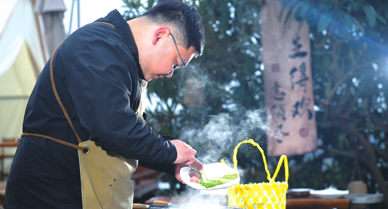 村民在做银鱼肉丸汤。黄云摄