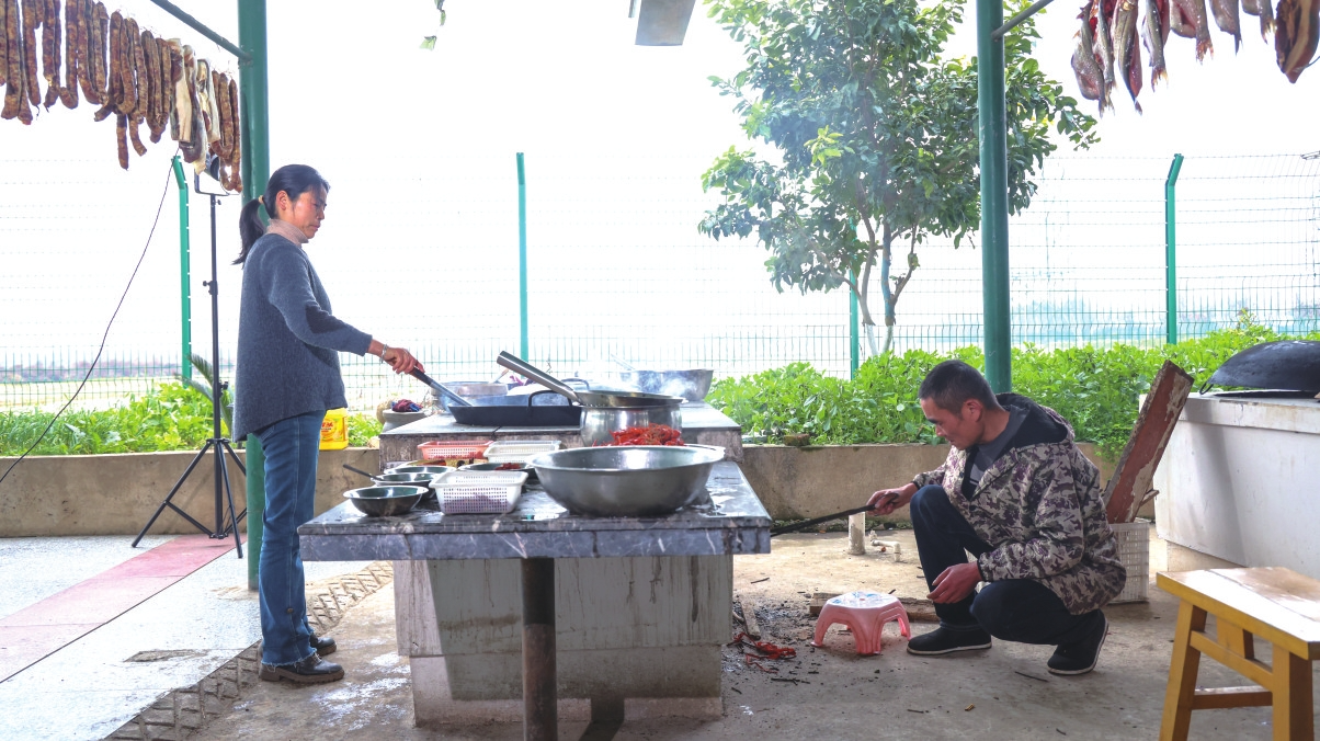南县南山村村民在做小龙虾招待客人。钟浩摄