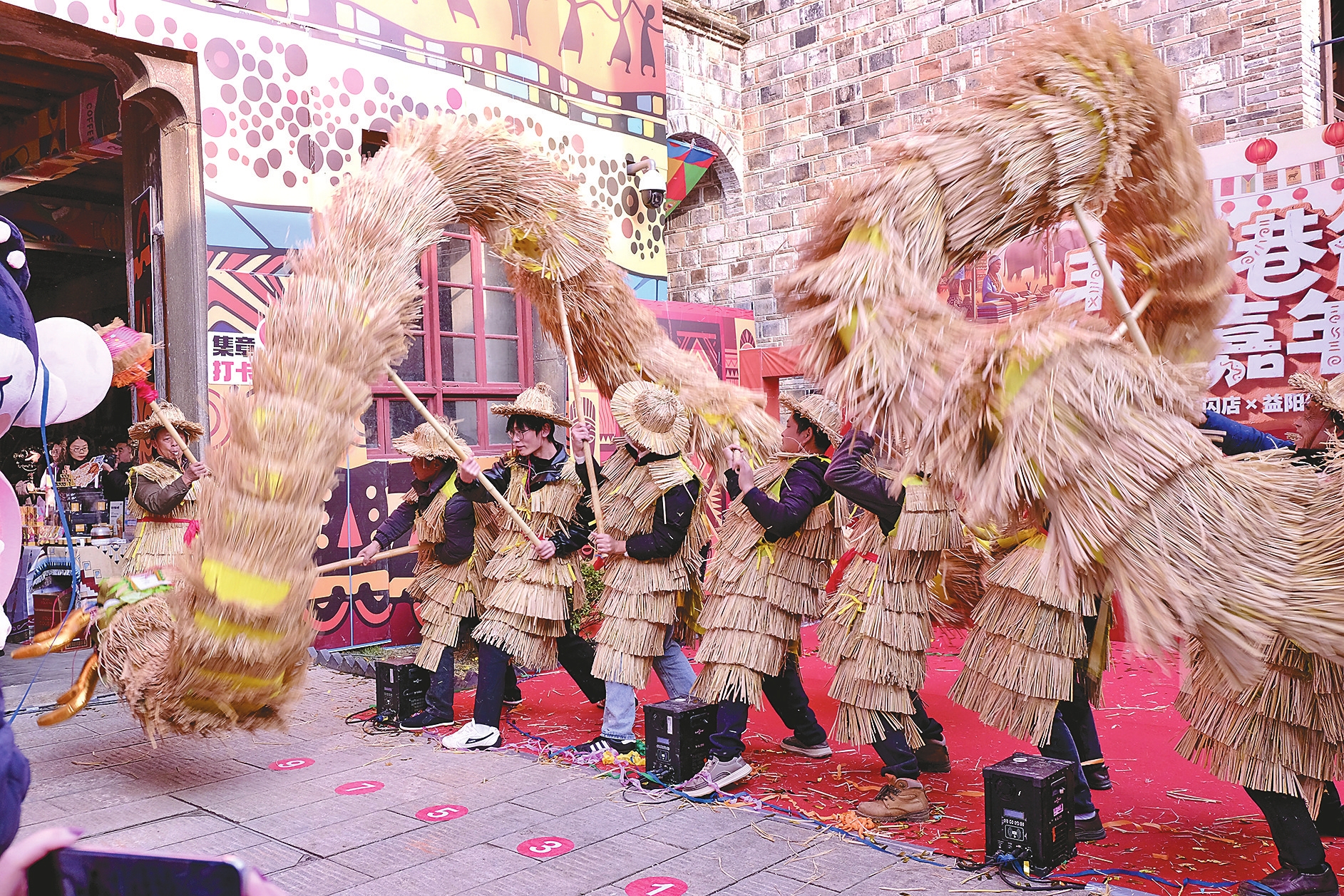 舞龙表演吸引众多游客驻足喝彩。陈徐文倩摄