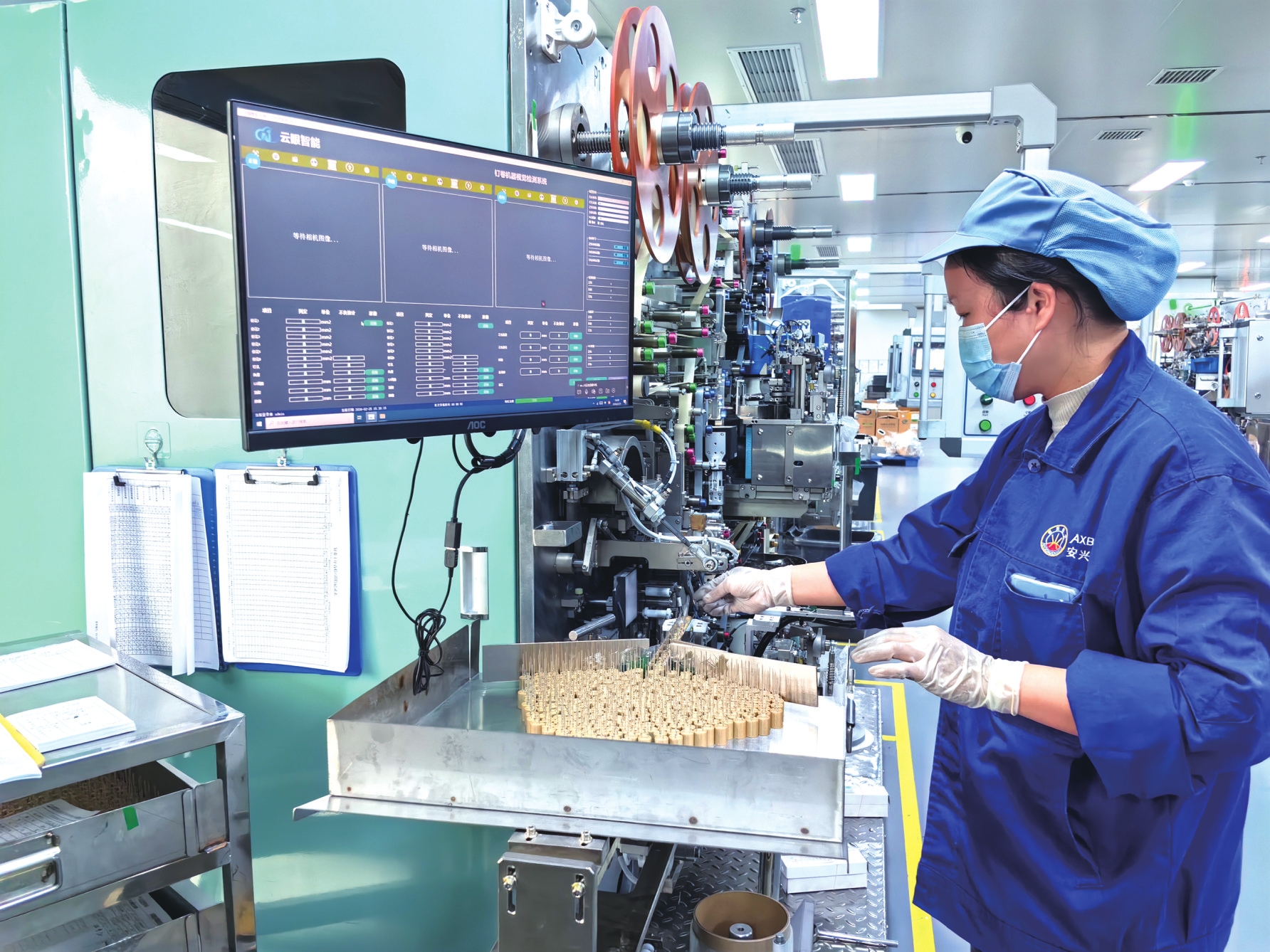 安兴电子生产车间内,工作人员正抓紧赶制订单。曹灿摄