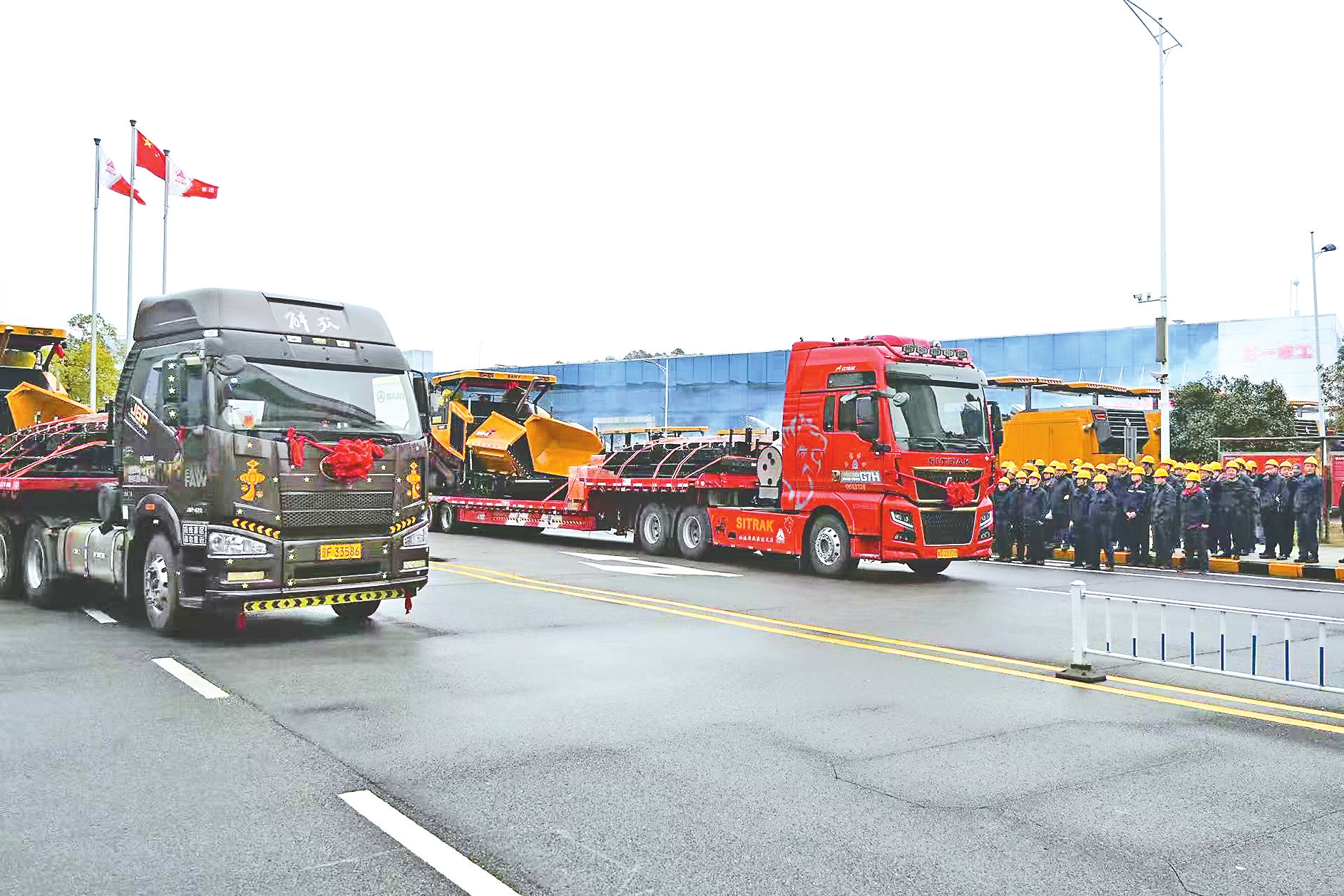 湖南三一中阳机械有限公司发车仪式。(益阳高新区提供)