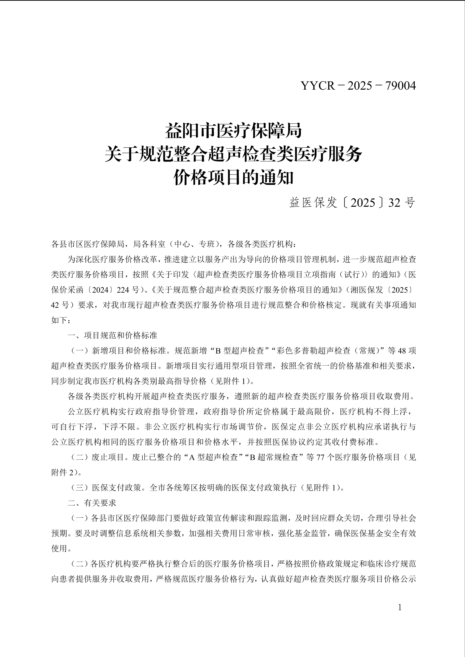 益阳市医疗保障局关于规范整合超声检查类医疗服务价格项目的通知