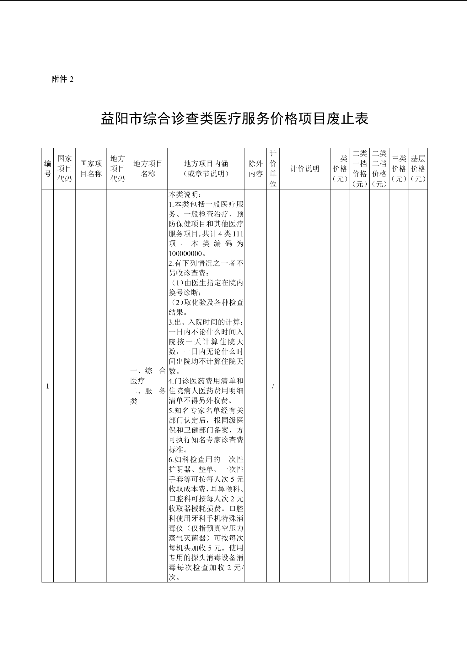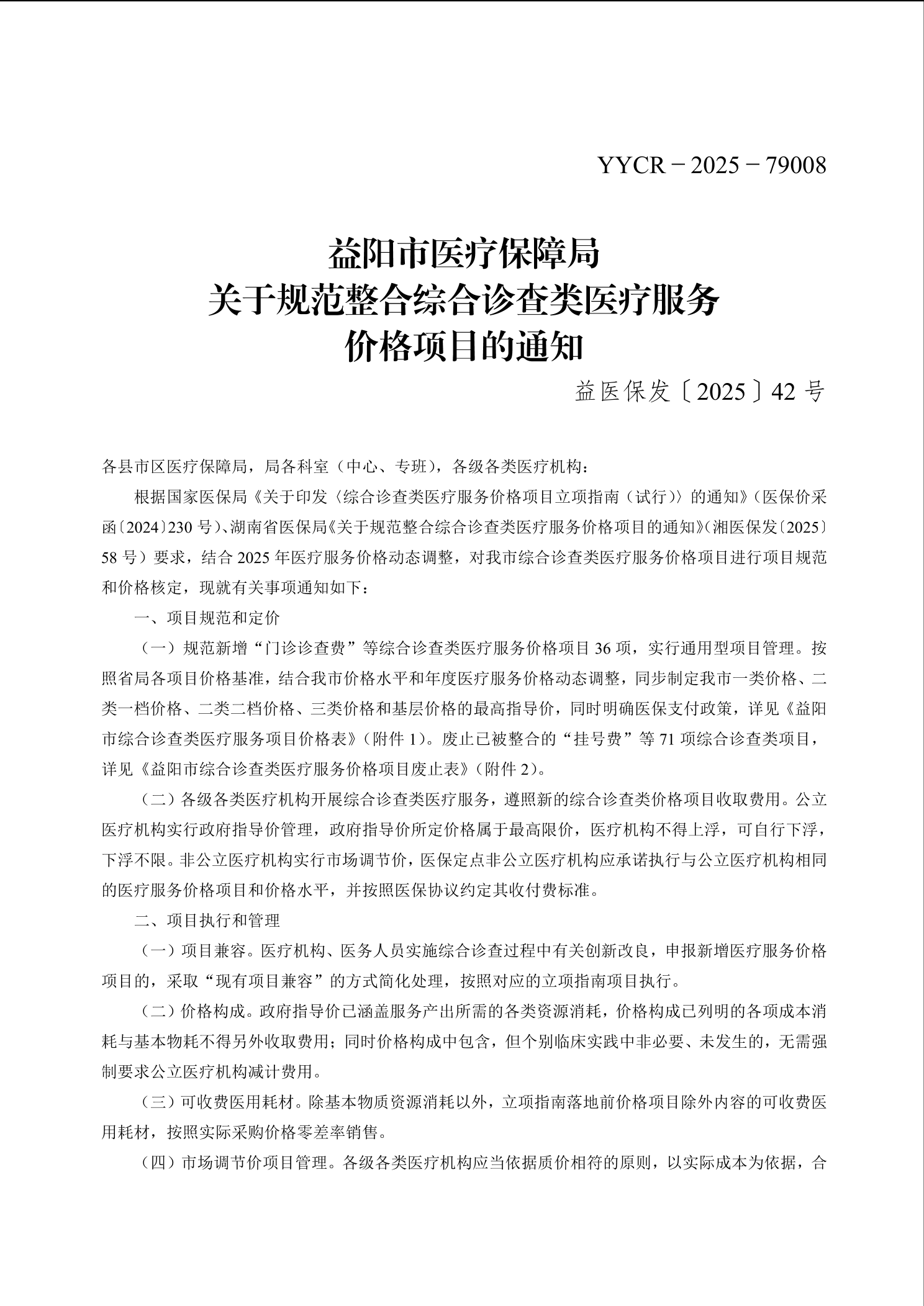 益阳市医疗保障局关于规范整合综合诊查类医疗服务价格项目的通知