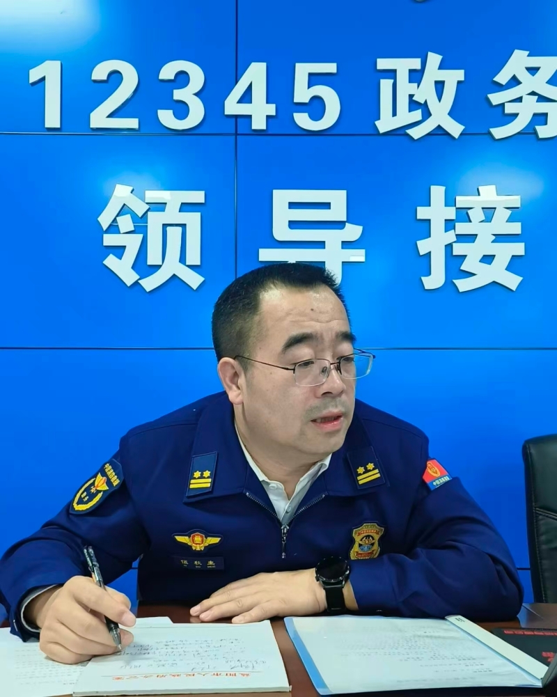 市消防救援支队支队长伍秋生接听12345热线(2025年)