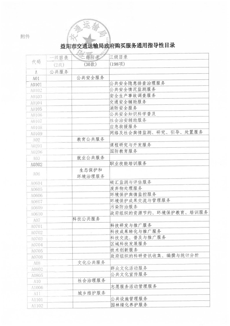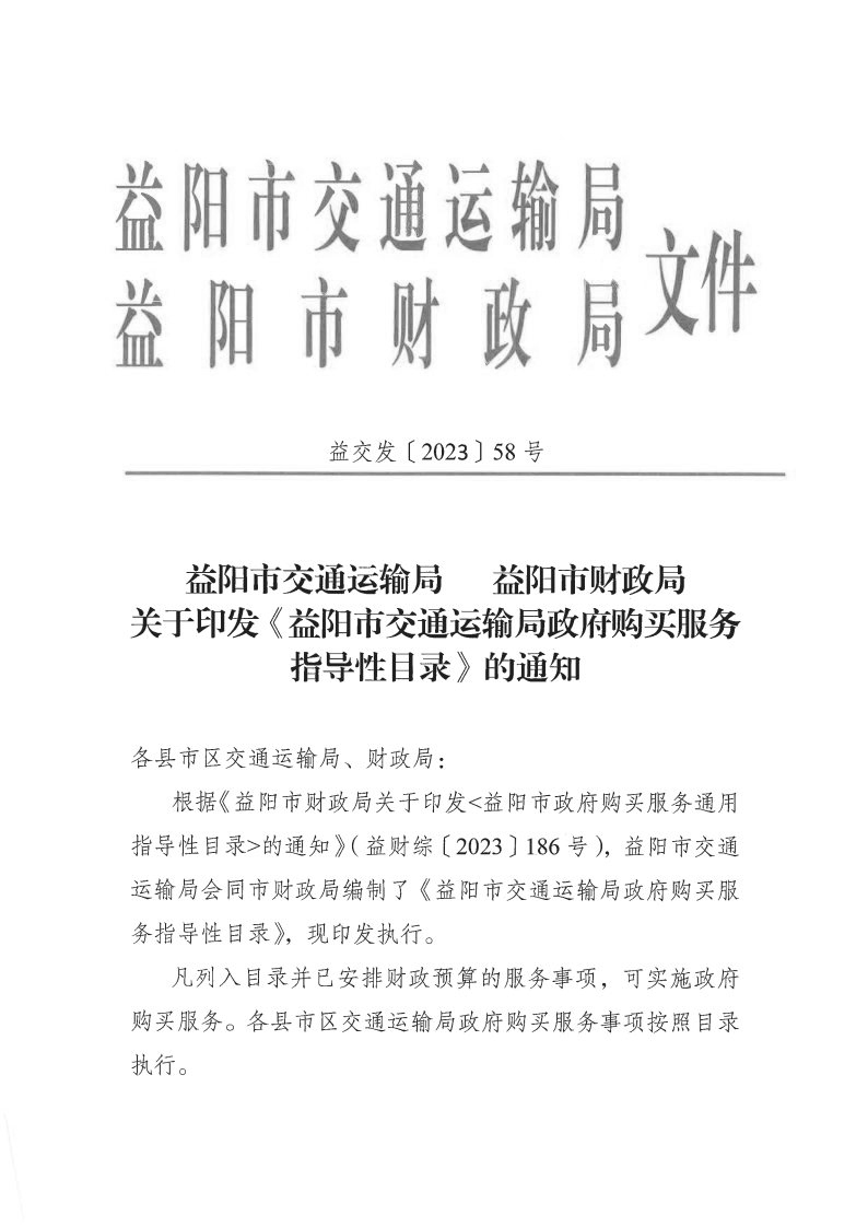 关于印发《益阳市交通运输局政府购买服务指导性目录》的通知