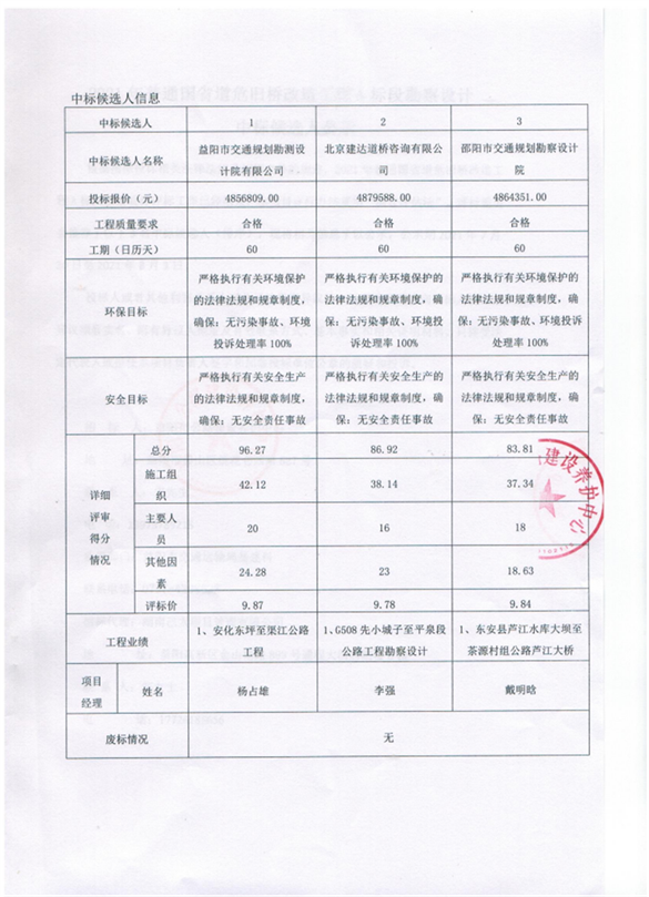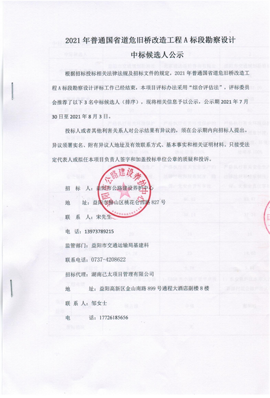 2021普通国省道危旧桥改造工程A标段勘察设计中标候选人公示