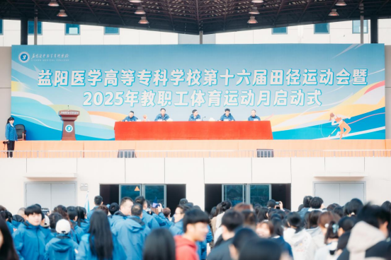 10月24日,益阳医学高等专科学校举行第十六届田径运动会暨2025年教职工体育运动月启动式。校党委书记周奎宣布运动月启动,党委委员、副校长高文辉致词,党委委员、副校长喻文辉主持启动式,在家校领导出席,全体运动员、裁判员参加。